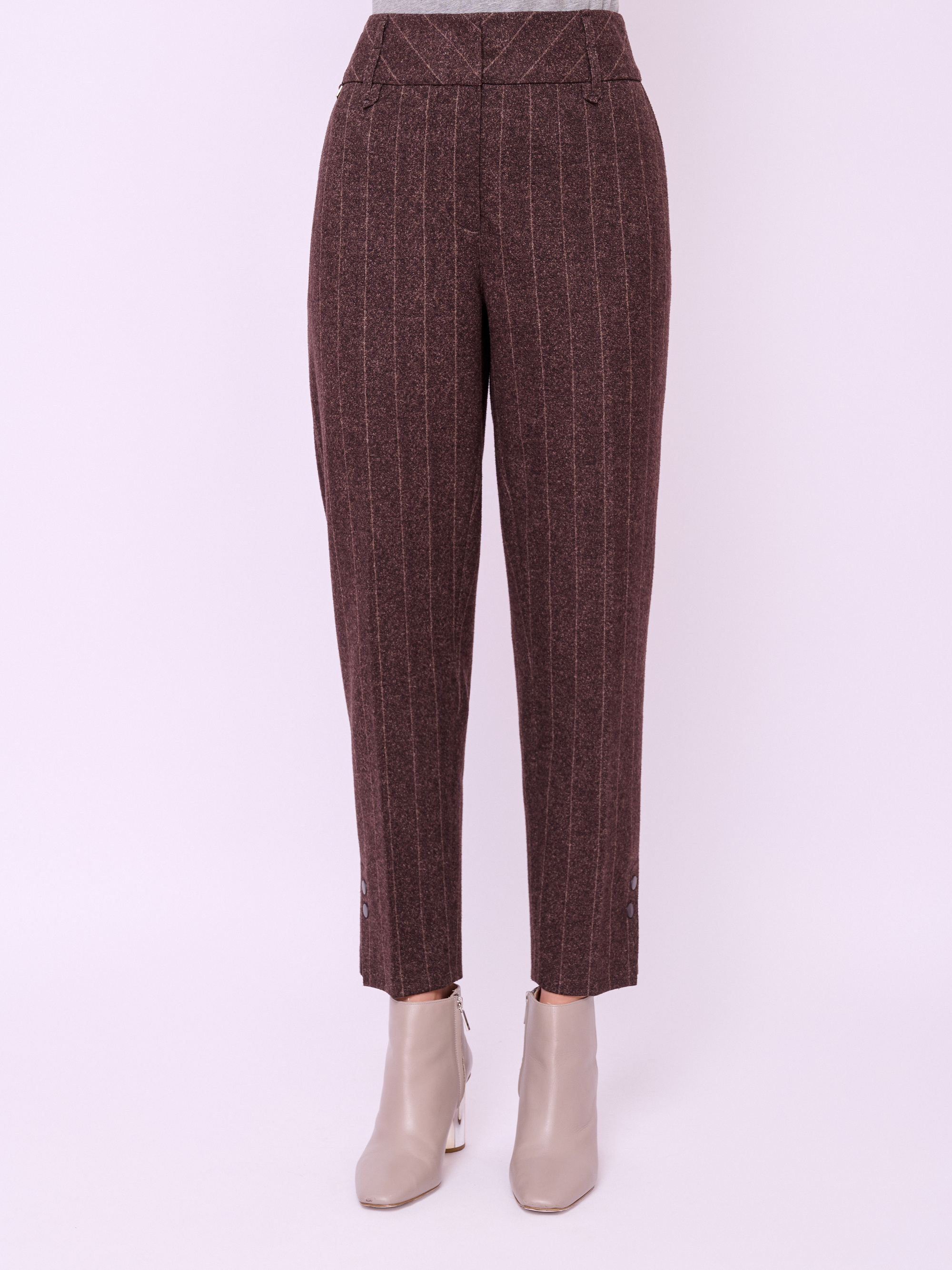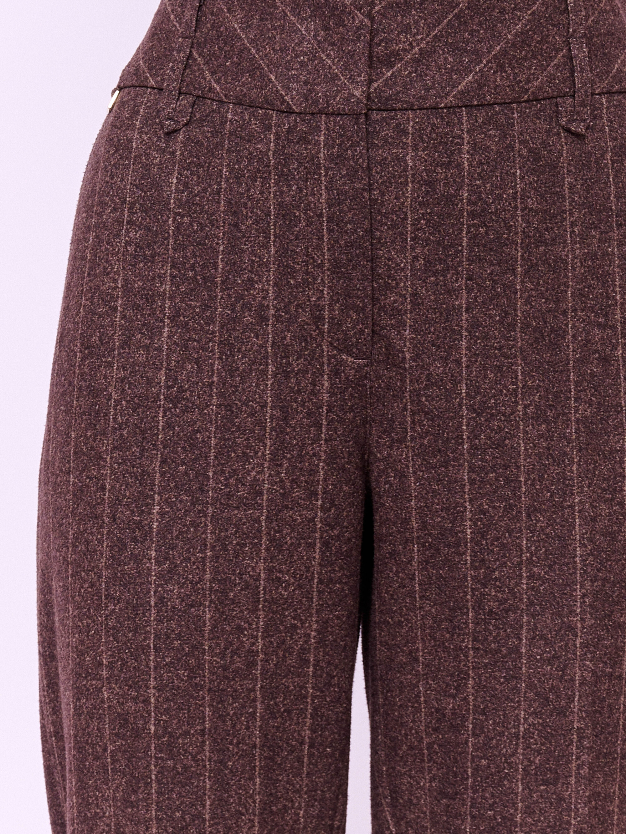 Зауженные брюки из мягкого сукна в полоску на молнии с косыми карманами и шлевками на поясе. Длина брючин: 74 см.
