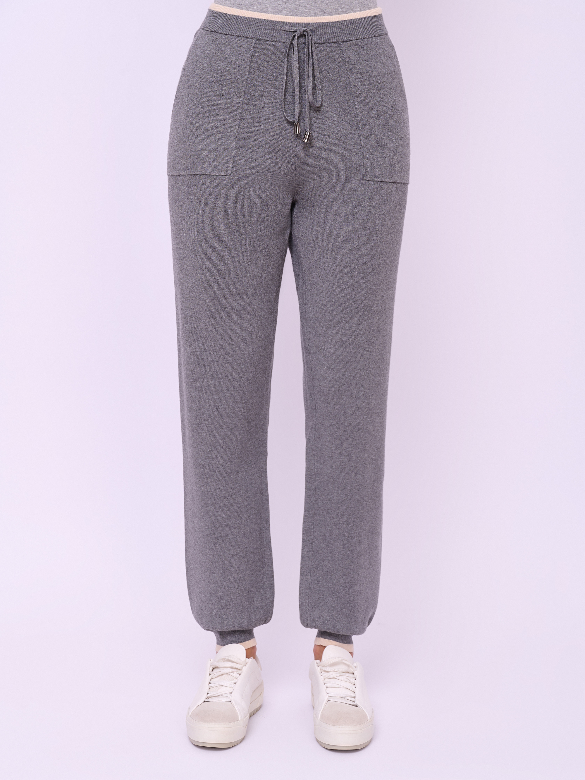 Детали: без застежки, пояс на резинке и кулиске, без рисунка, карманы косые, крой брючин зауженный, посадка средняя. Длина брючин: 80 см.