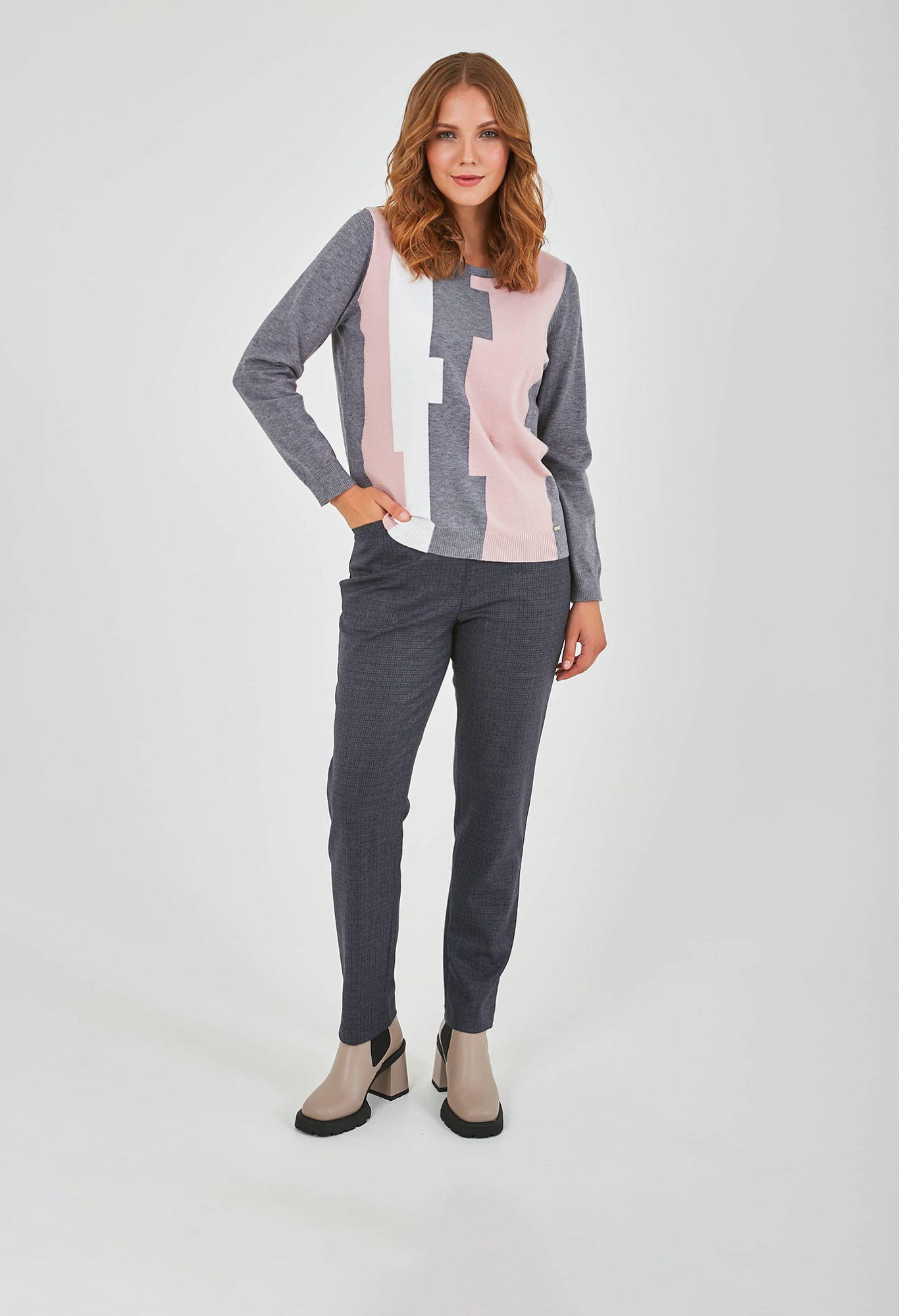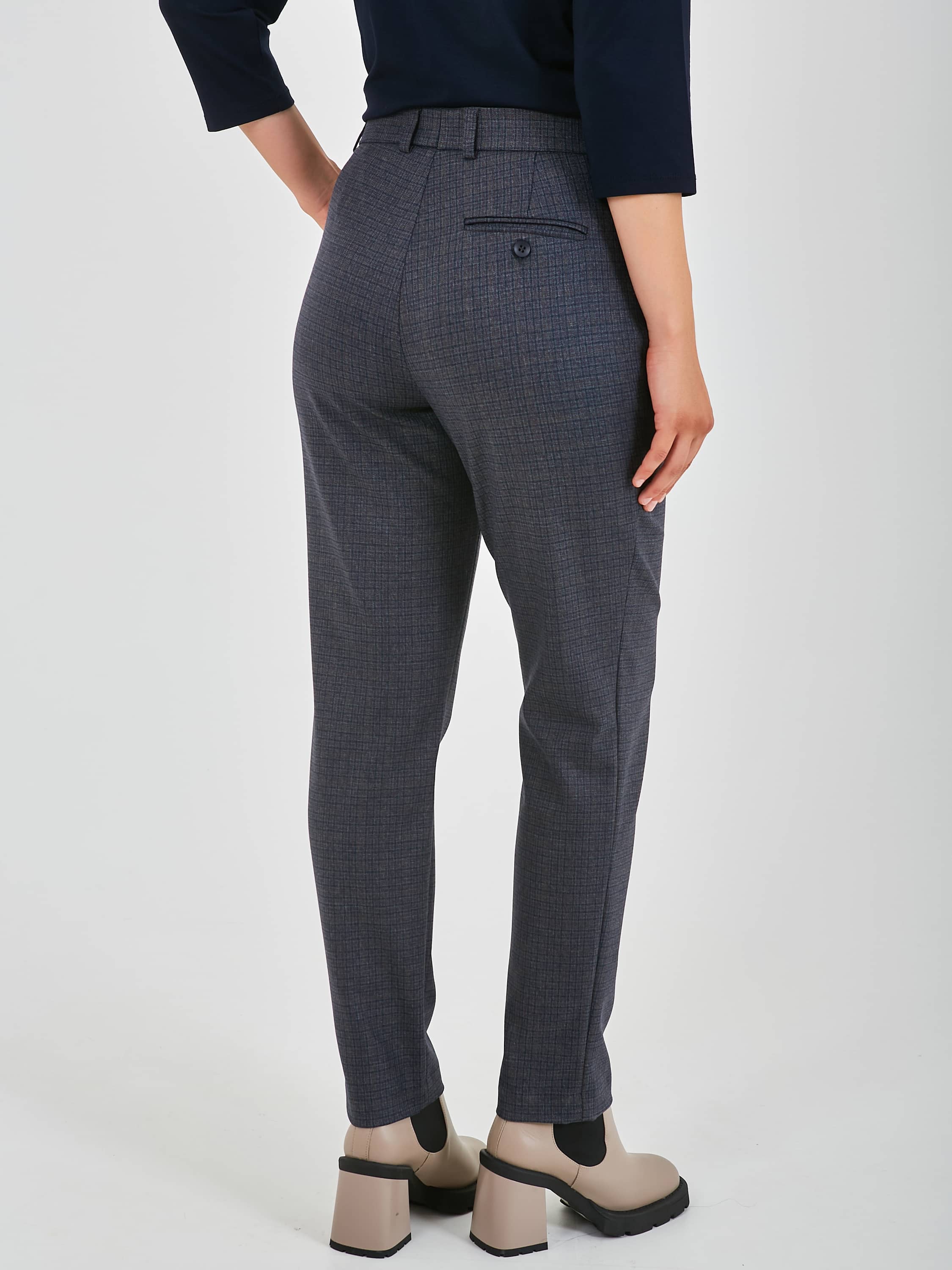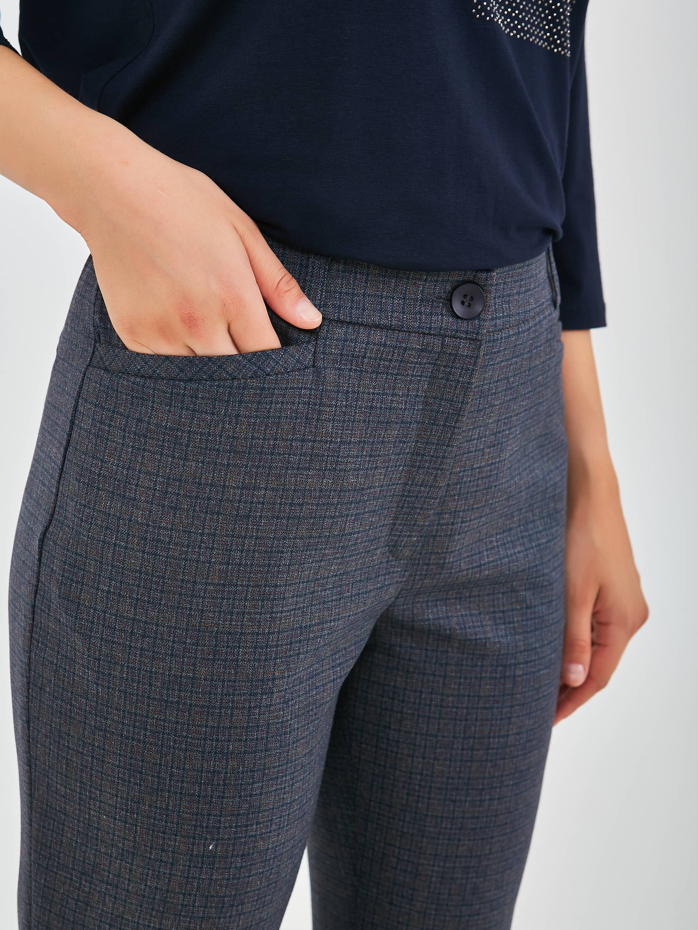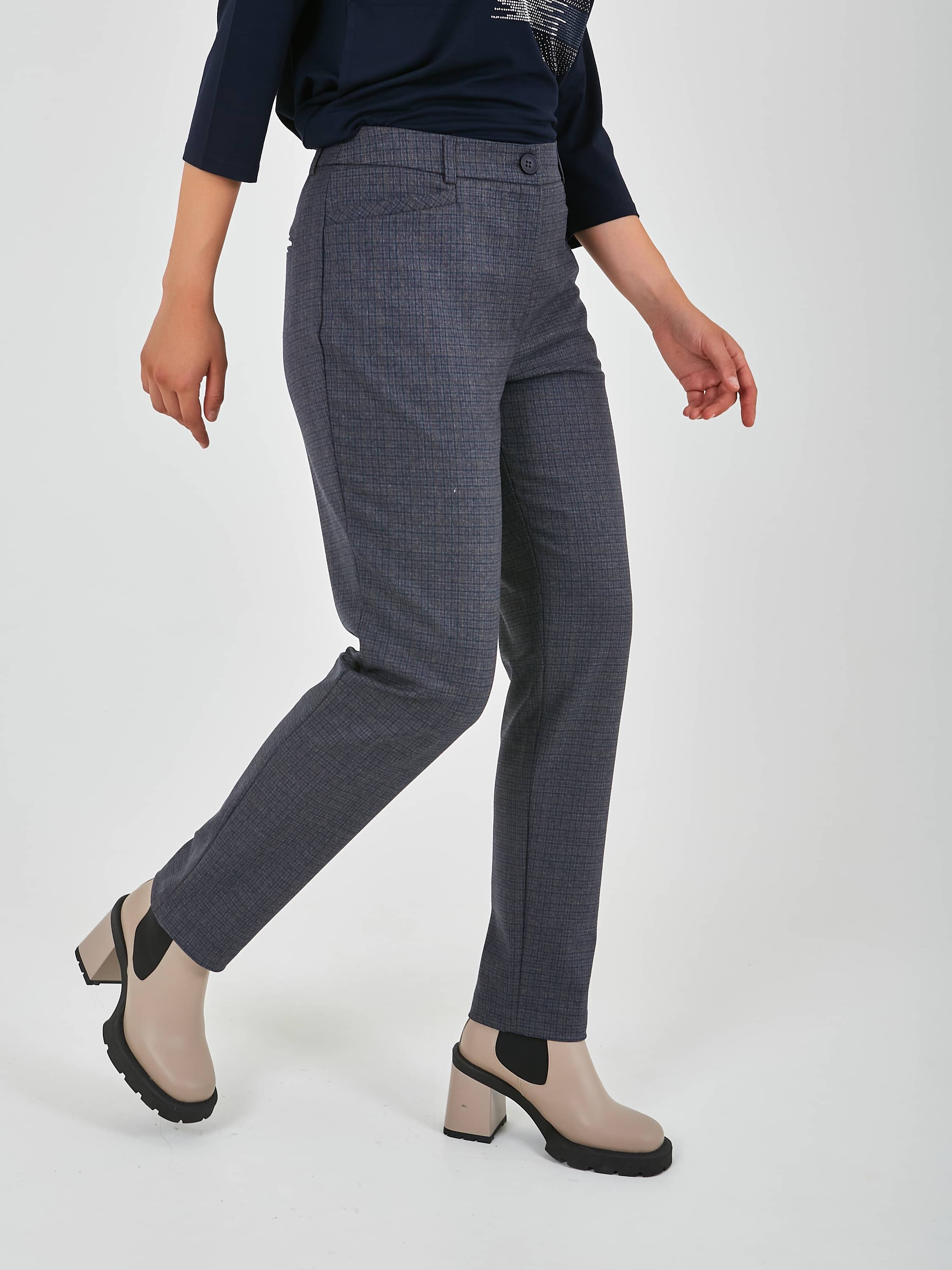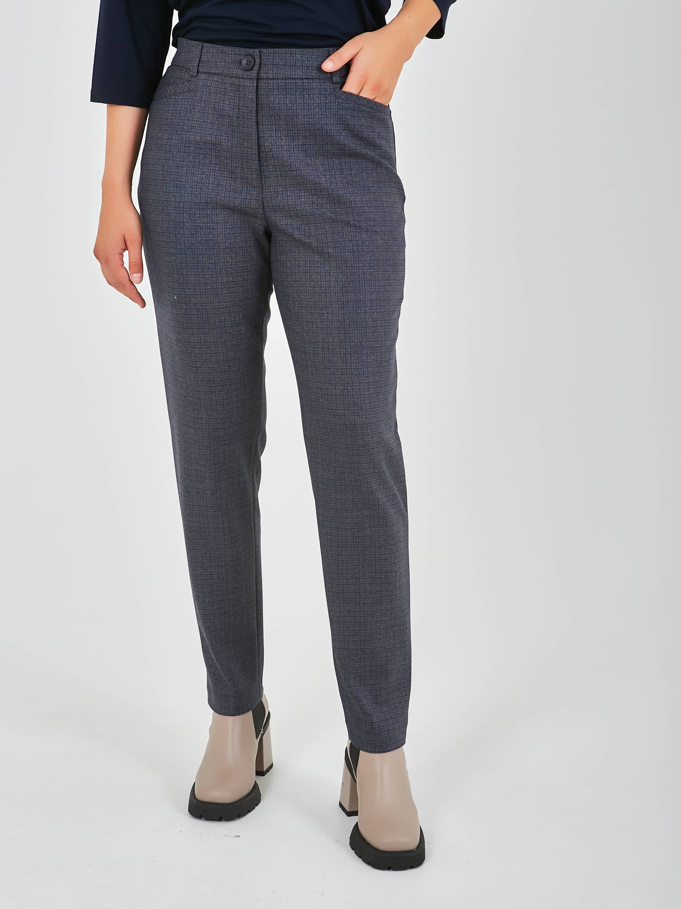 Чуть зауженные брюки прямого кроя, с принтом мелкой клетки.