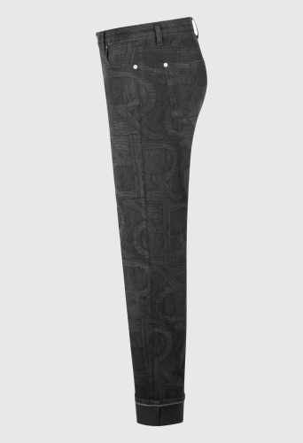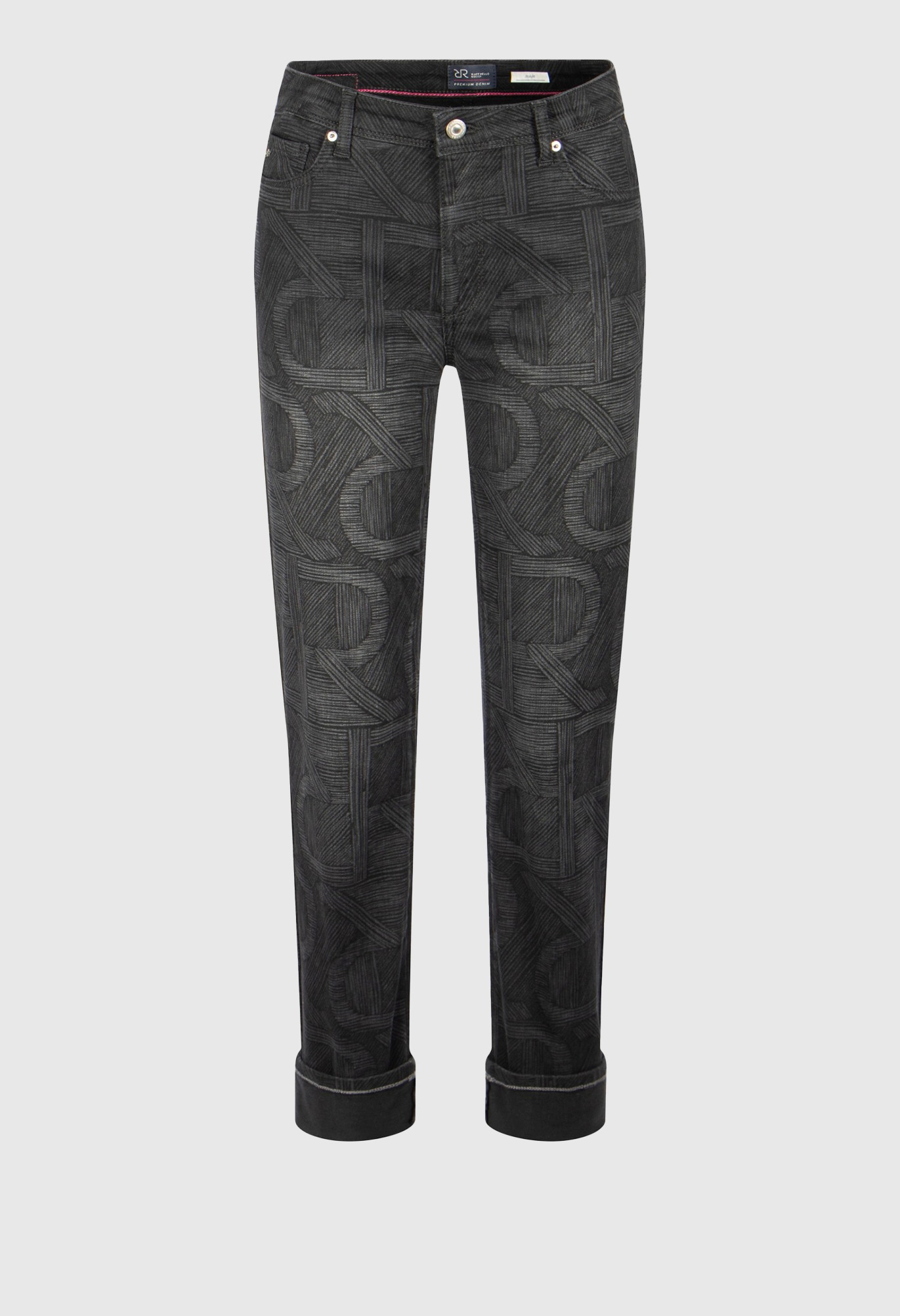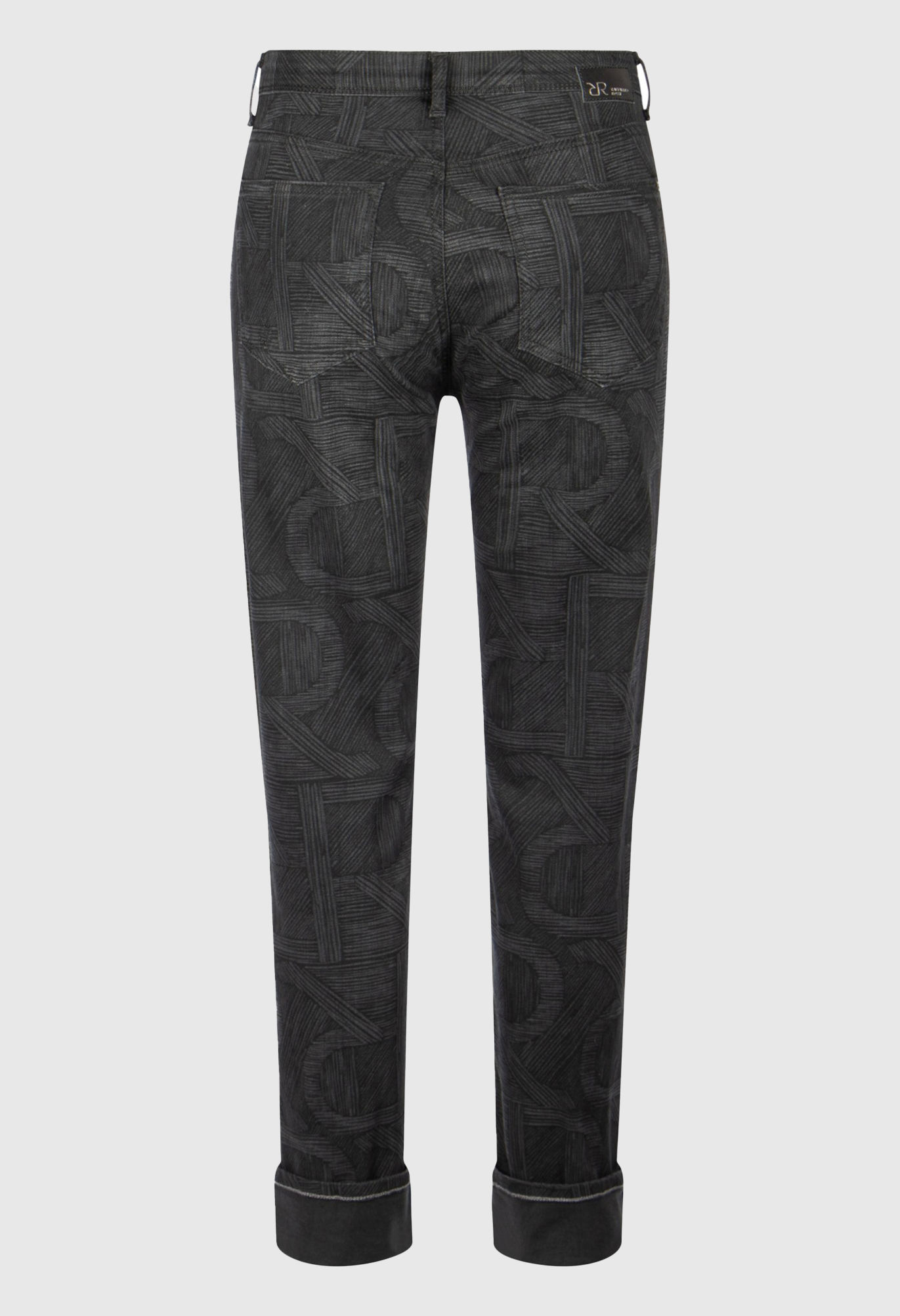 Джинсы со средней посадкой и пятью карманами и изысканным логотипом RR по всей поверхности. Свободная прямая модель. Длина по внутреннему шву: 74 см.
