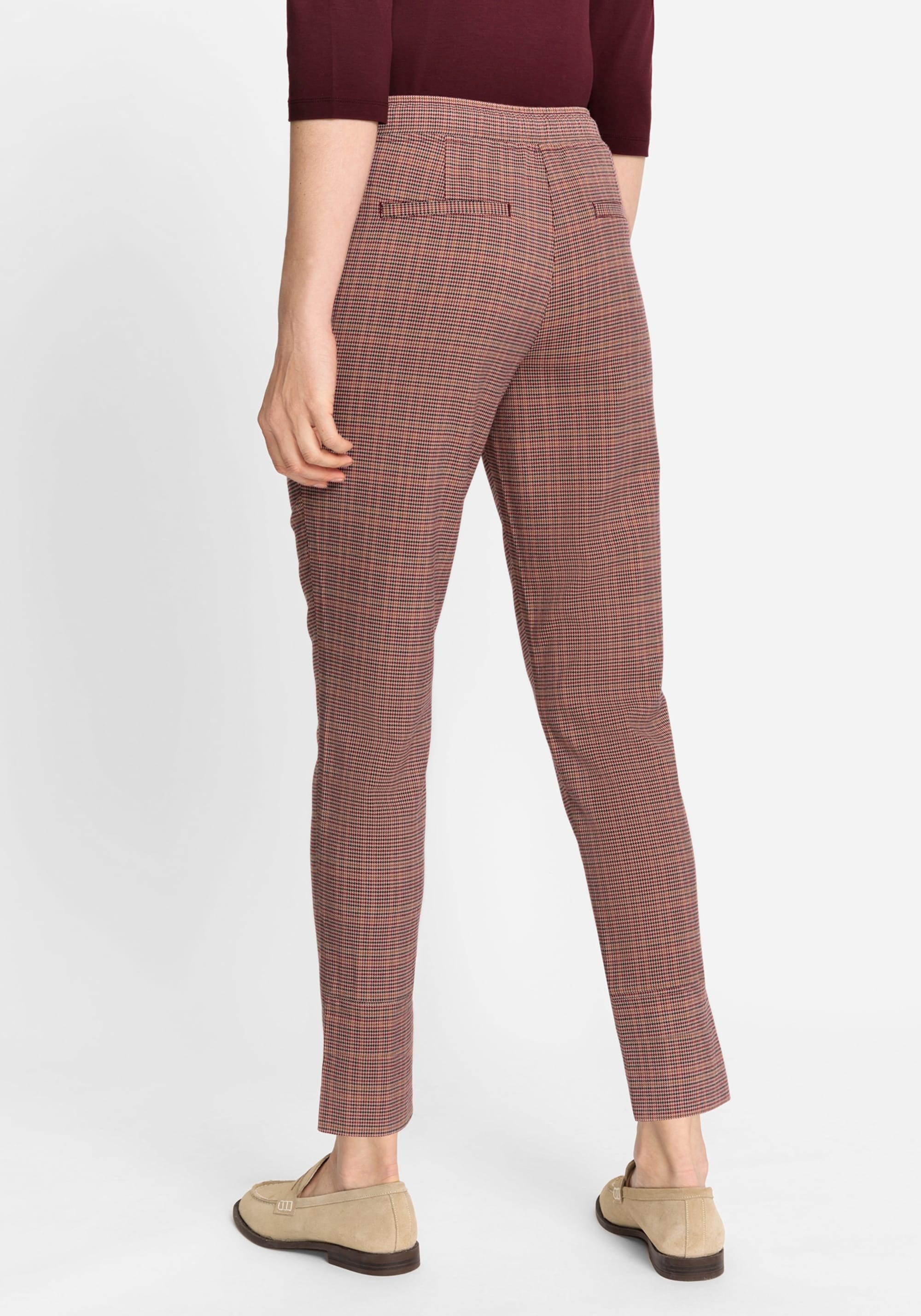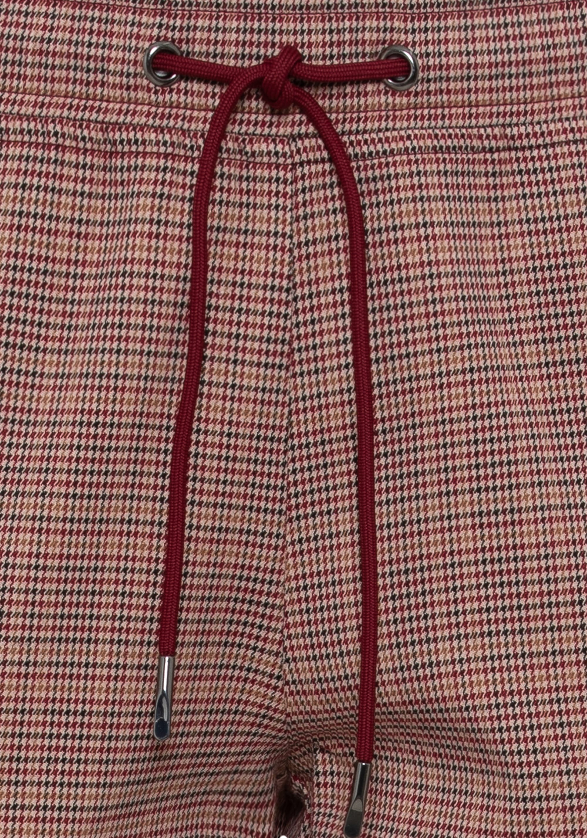 Брюки в стиле джоггеров украшены классическим рисунком «гусиные лапки» по всей поверхности. Талия на шнурке, задние прорезные карманы и боковые карманы на молнии. Подол можно застегнуть или завернуть в манжеты. Посадка расслаблена в бедрах и сидит немного ниже естественной линии талии для комфорта.