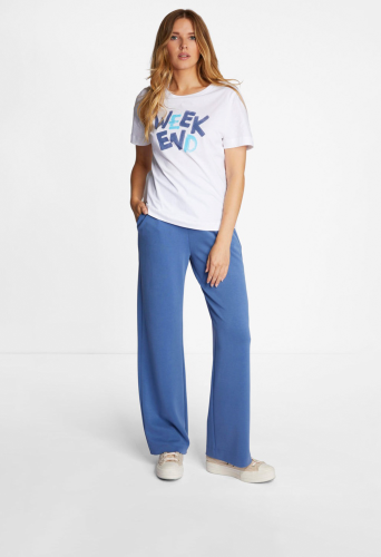 Характерной особенностью этих брюк является приятная широкая штанина свободного кроя. Эластичный пояс, боковые карманы и эластан подчеркивают комфорт при ношении. Длина для размера 42: 80 см.