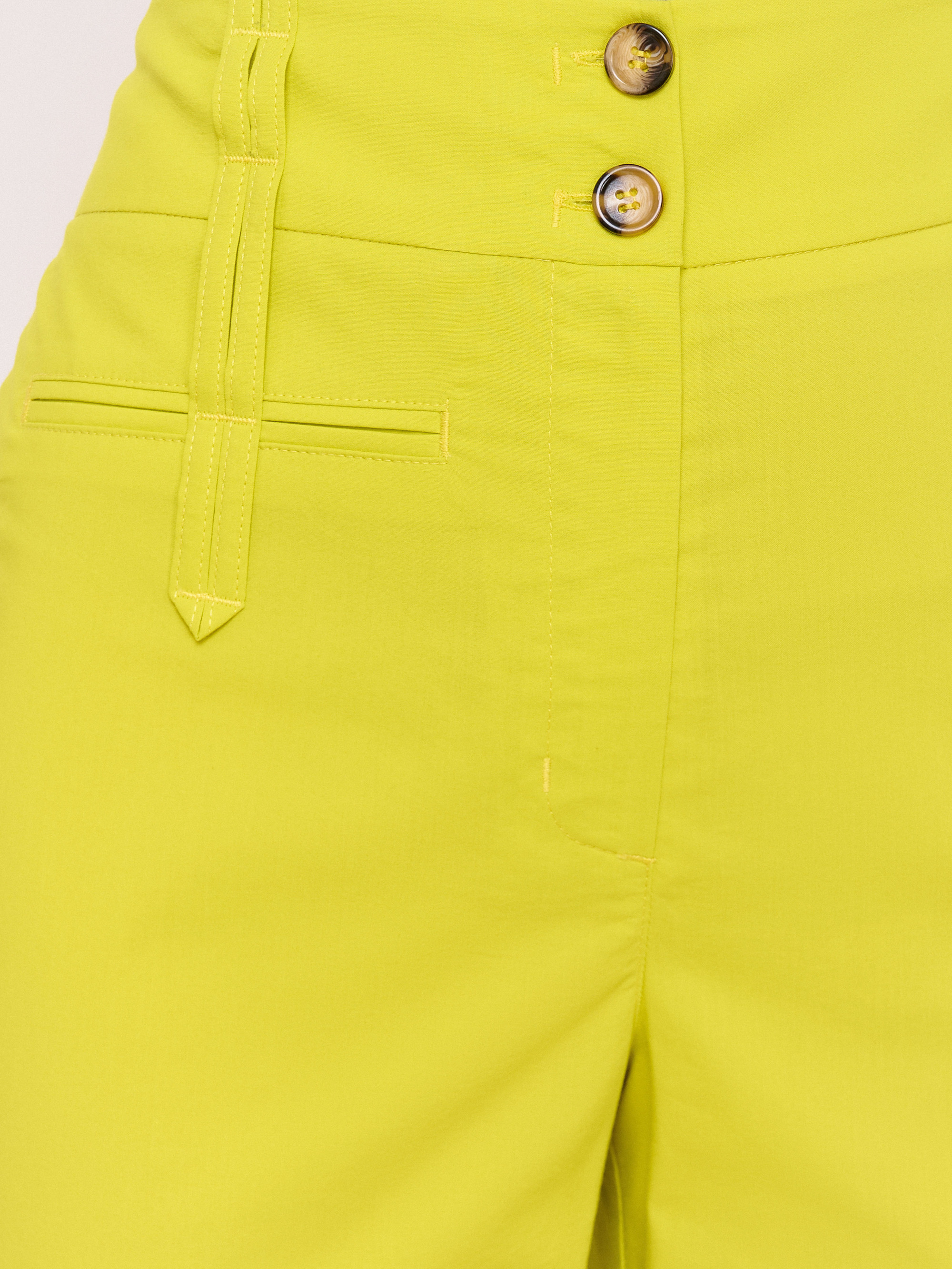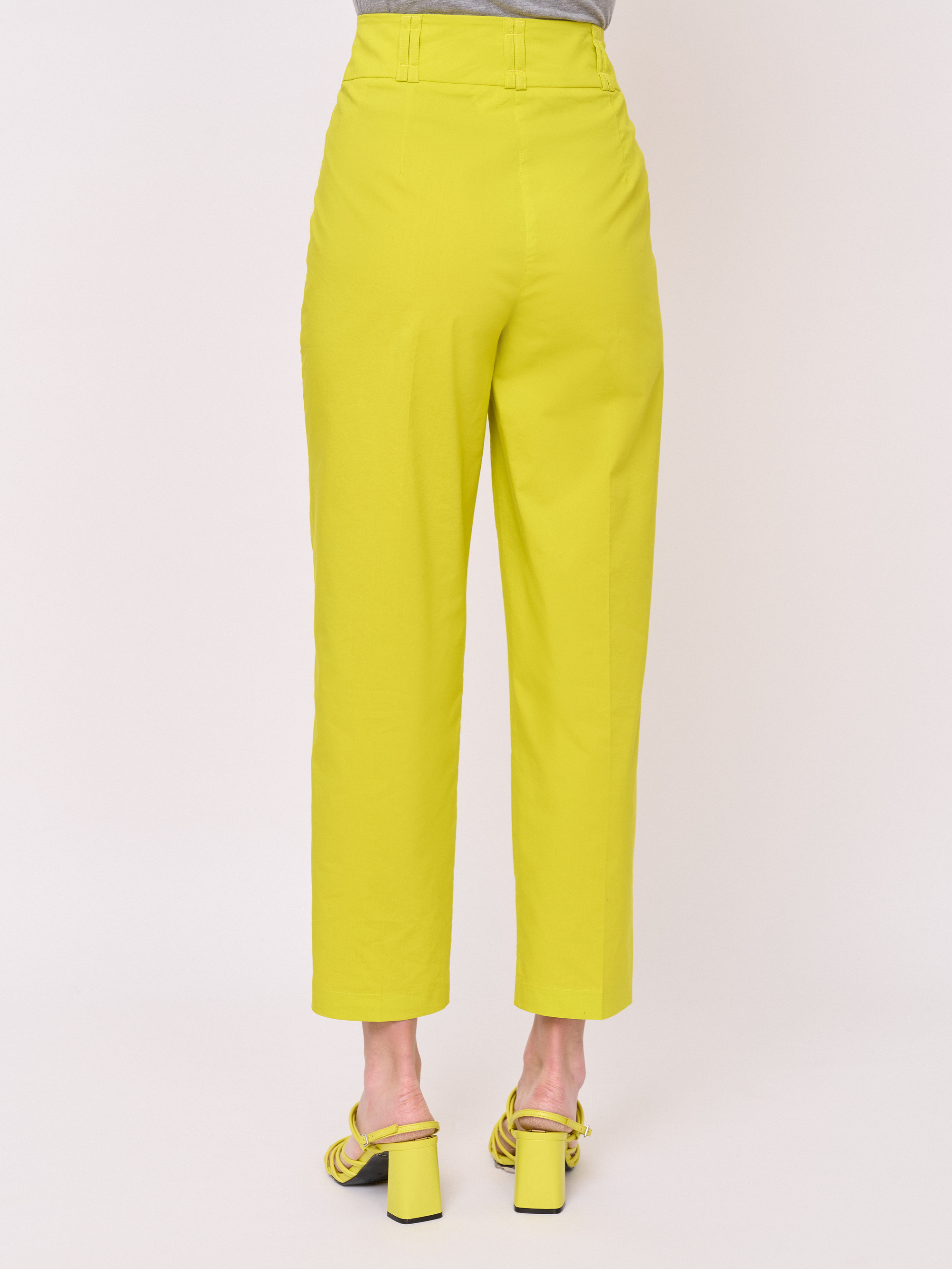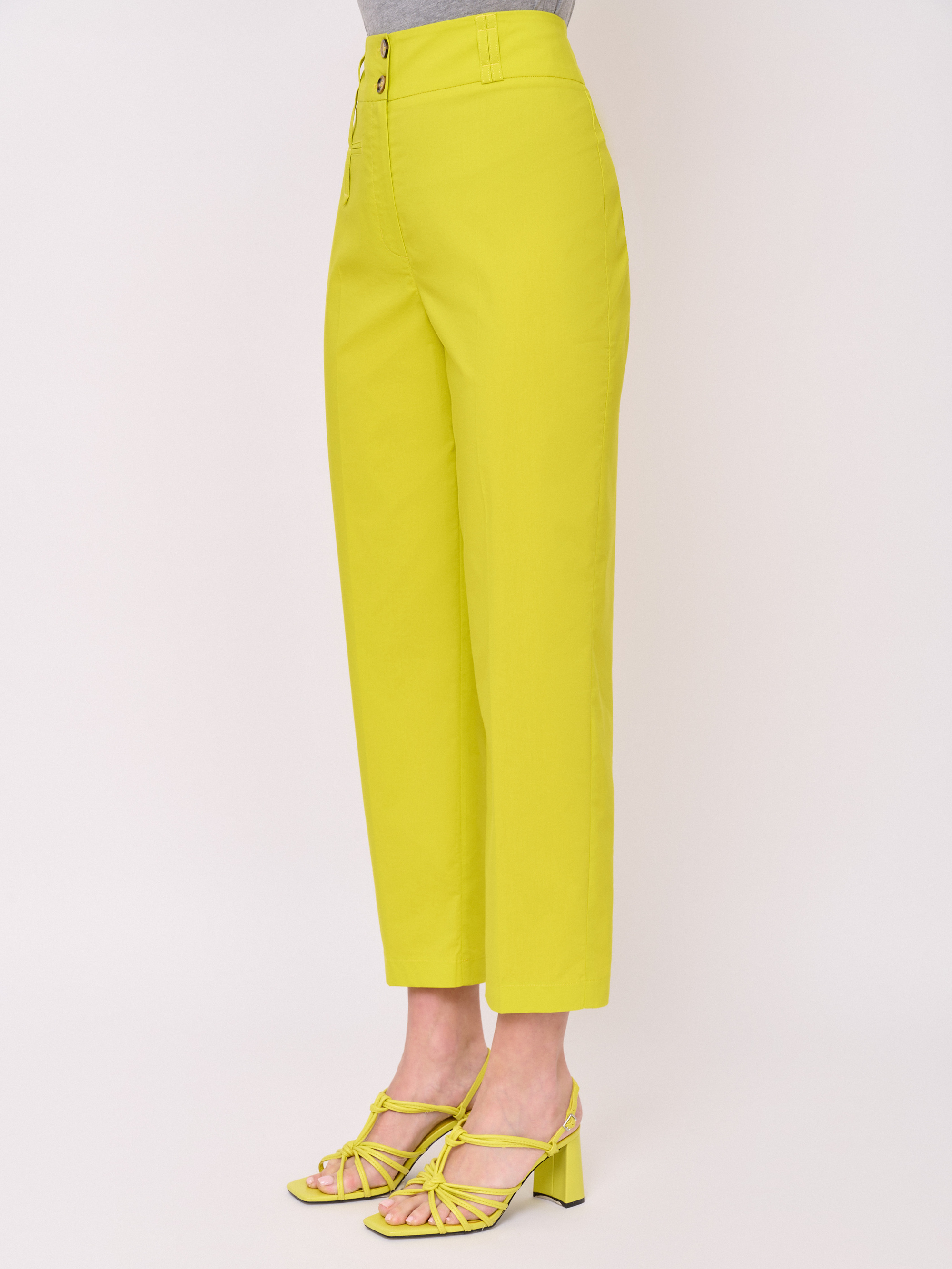 Застежка молния, без рисунка, без карманов, крой брючин слегка зауженный, посадка средняя, шлевки для ремня, высокий пояс. Длина брючин: 69 см.