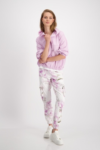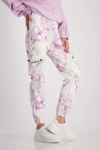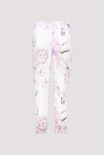 Спортивные брюки с цветочным узором очень мягкие на ощупь и имеют эластичные манжеты внизу штанин. Эластичный пояс. Нормальная высота талии. Карманы для рук. Накладные карманы с клапанами на кнопках. Накладные задние карманы. Длина внутренней штанины для всех размеров 72 см.