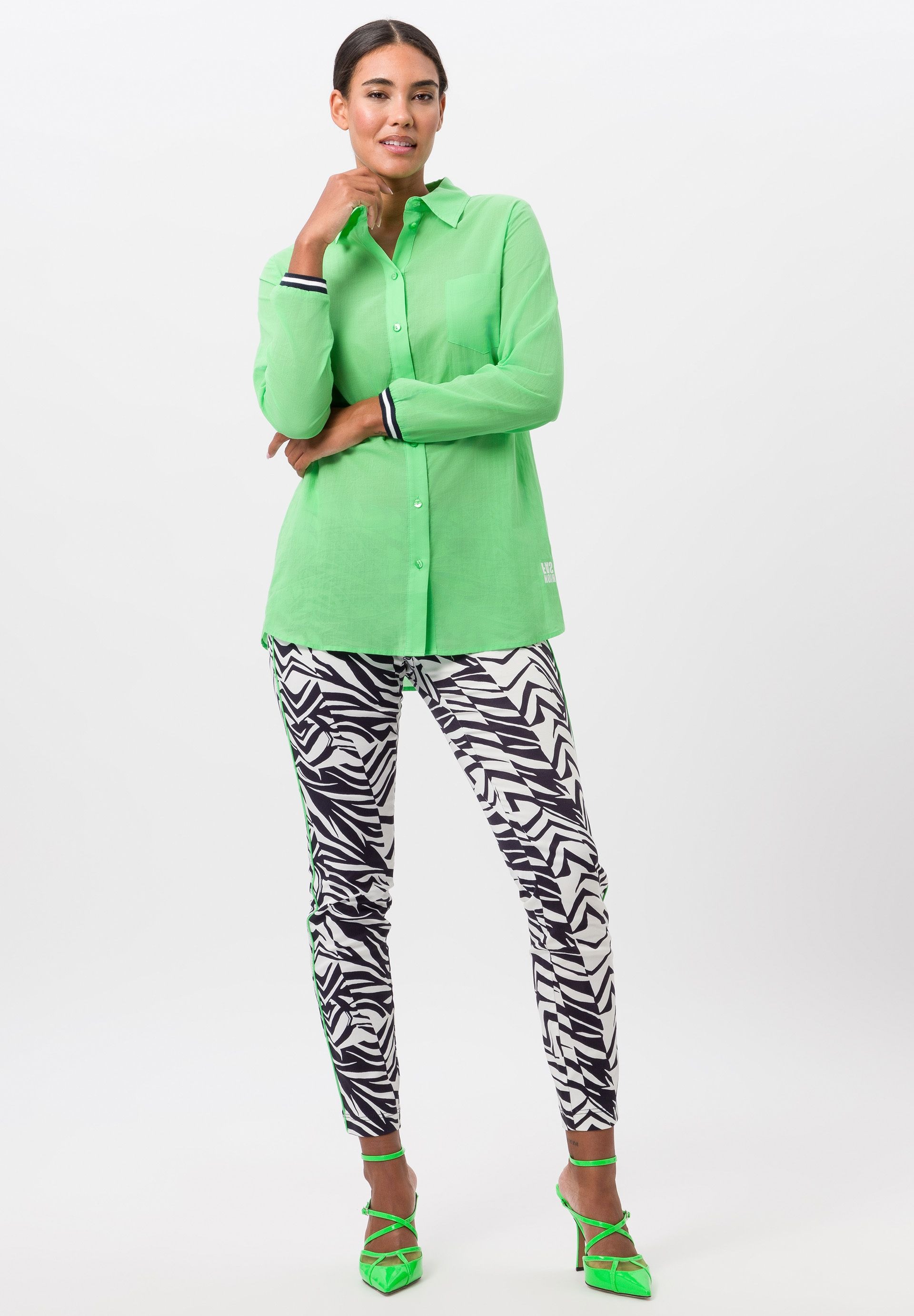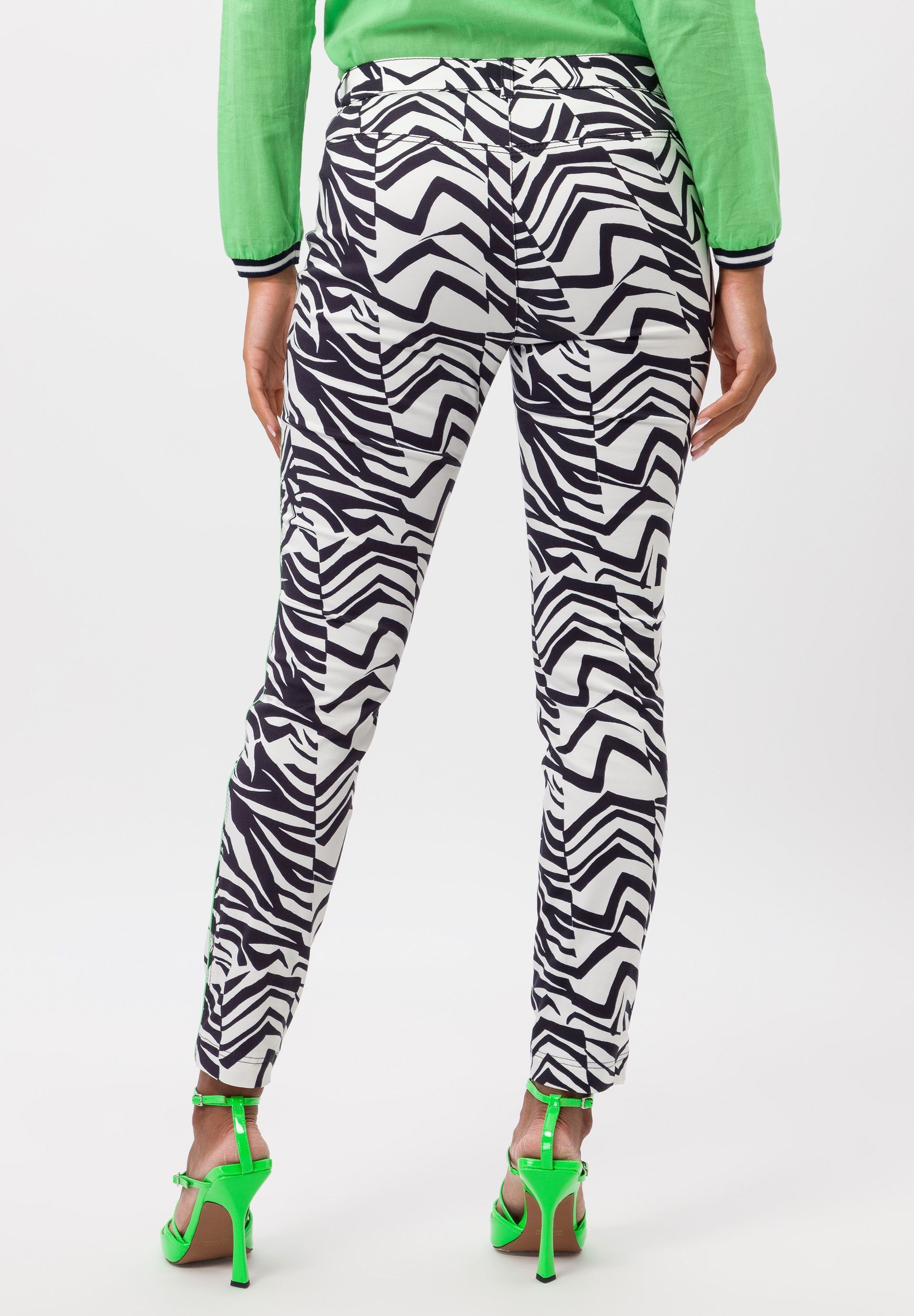 Брюки женские со сплошным узором и контрастной окантовкой по бокам. В этой модели привлекательный принт по всей поверхности дополнен контрастной окантовкой по бокам. Они добавляют красочной изюминки к эффектному узору и визуально утягивают ногу. Облегающий крой надежно облегает фигуру благодаря эластичности. Длина - 72 см.