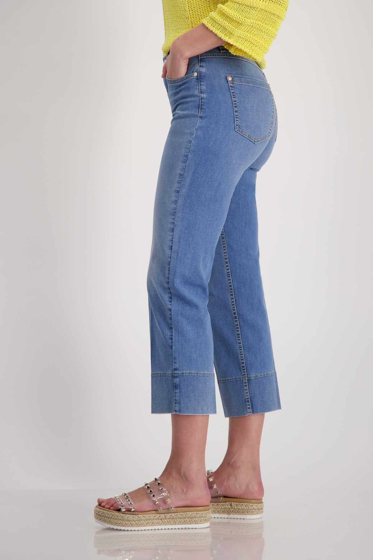 Джинсовые брюки Bootcut 3/4 из высококачественного эластичного хлопка создают удобный и стильный вид. Нормальная высота талии. Боковые карманы. Накладные задние карманы. Широкая кромка внизу штанин. Длина внутренней штанины для всех размеров составляет 64 см.