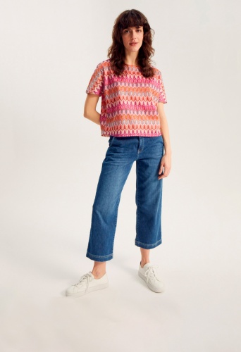 Расклешенные кюлоты несомненный тренд этого сезона! Кюлоты украшены декоративными потертостями и складками, а также декоративной строчкой по низу штанин. Застежка на скрытую молнию и пуговицу. Притачной пояс со шлевками для фиксации ремня.