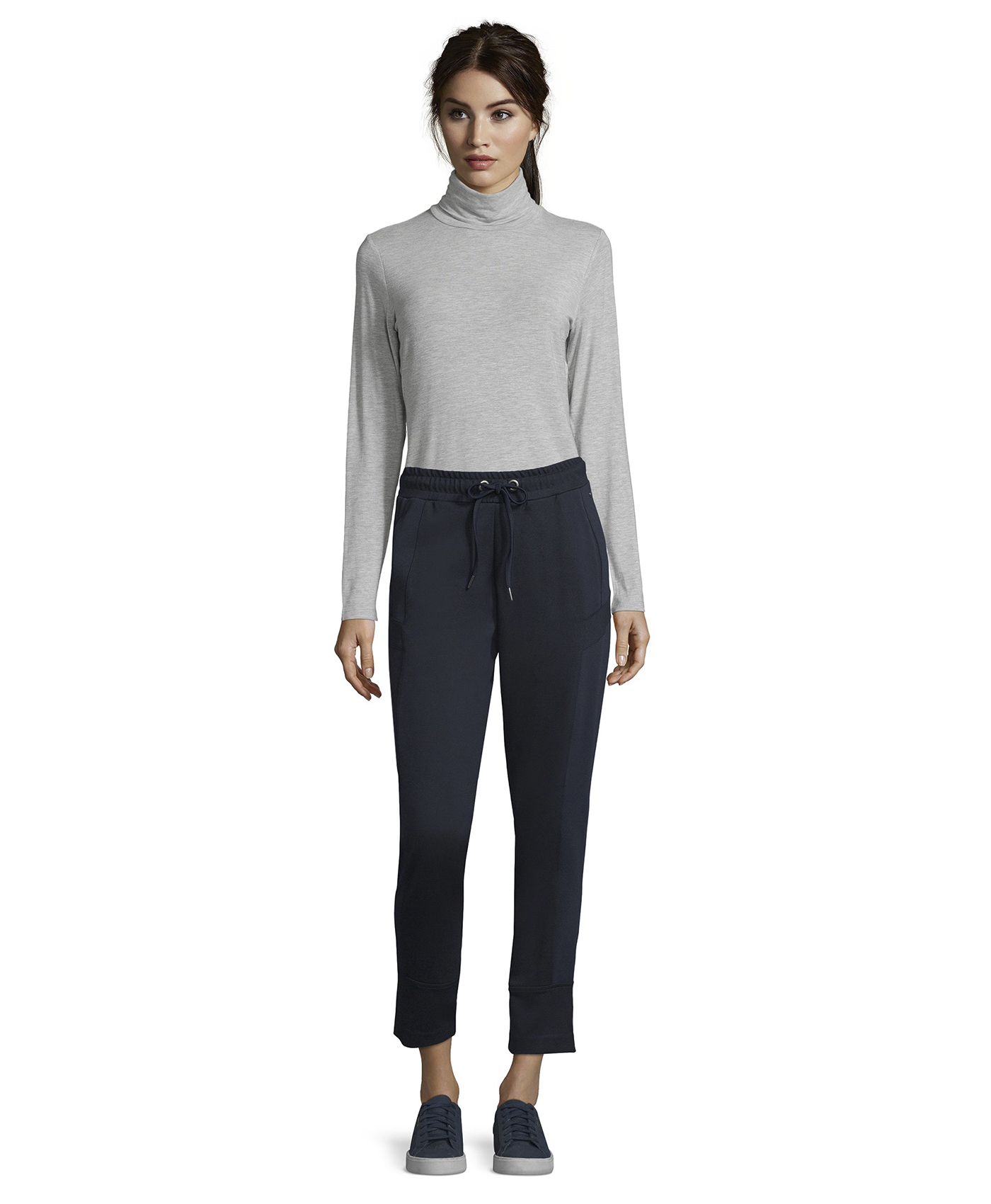 Прямые брюки в спортивном стиле. Кулиска на поясе. Материал из вискозной смеси приятен к телу. Отличный выбор для прогулок и спорта!