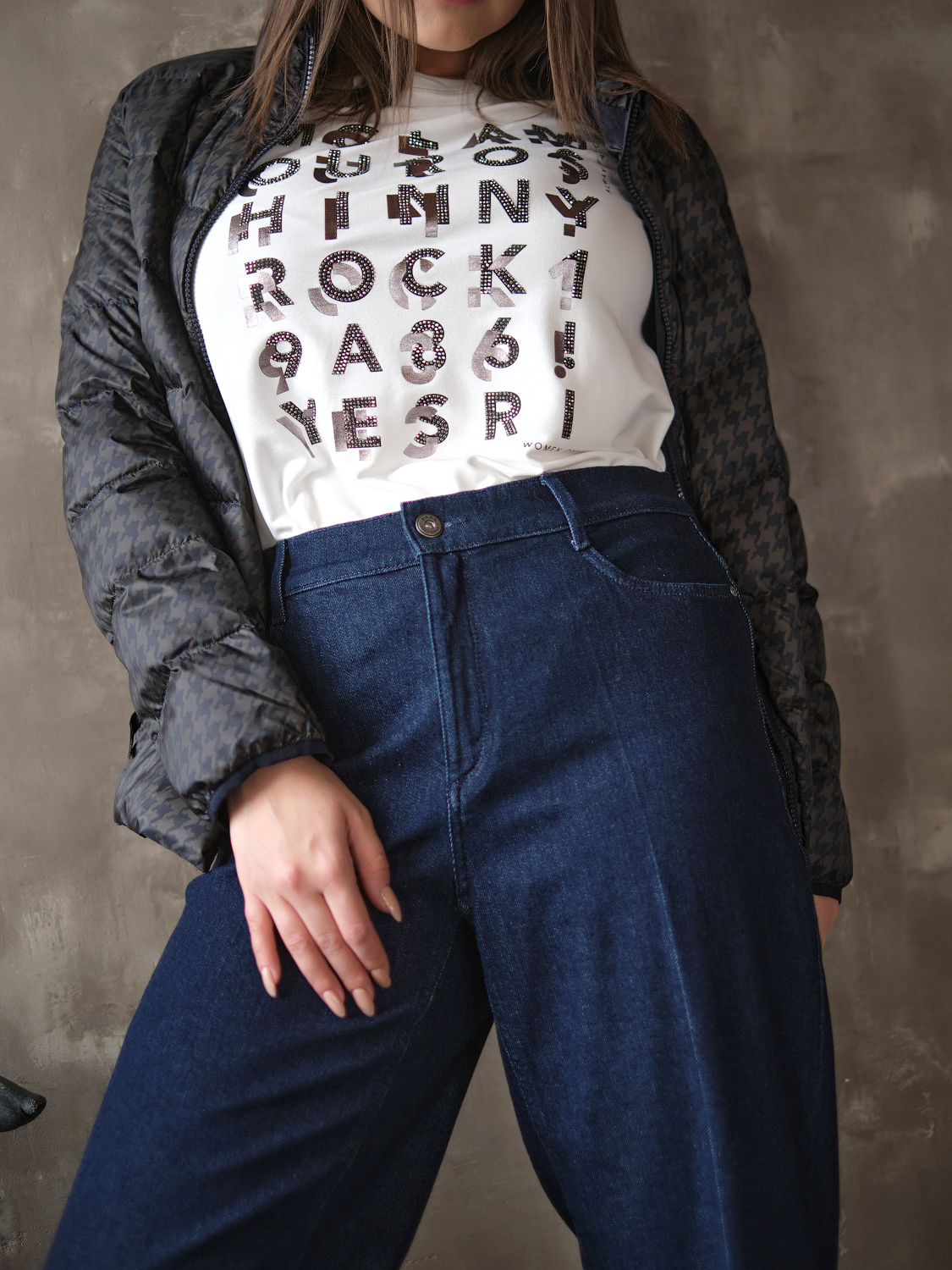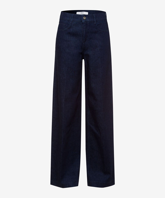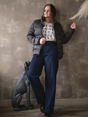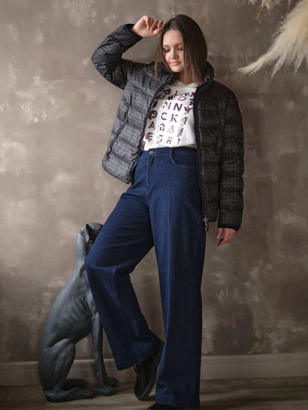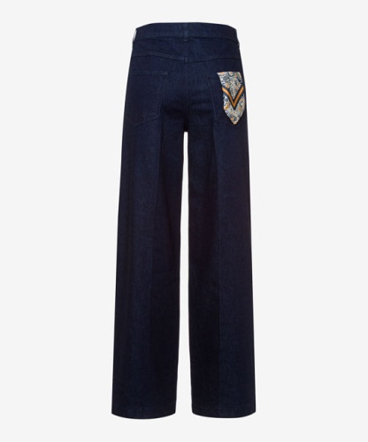 Стильные брюки из денима для роскошного повседневного образа. Свободный силуэт, широкие штанины, завышенная талия. Материал из эластичного смесового хлопка обеспечит комфортное ношение. Передние прорезные карманы. Накладные задние карманы. Застегивается на пуговицу и потайную молнию.