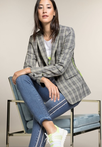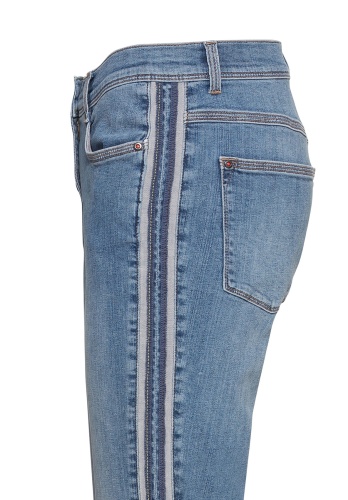 Данная модель джинсов создает оптимальную посадку благодаря прилеганию по линии ног. Модные потертости, полосы по бокам в спортивном стиле. Открытый нижний срез с бахромой придает брюкам демократичный вид. Неважно, спортивный или шикарный образ вы создаете, эти джинсы станут вашей модной изюминкой сезона. • джинсы с эффектом потертости и бахромой по низу • эластичная хлопковая джинсовая ткань • 5 карманов • яркие полосы по бокам • силуэт slim, средняя посадка • длина около 74 см