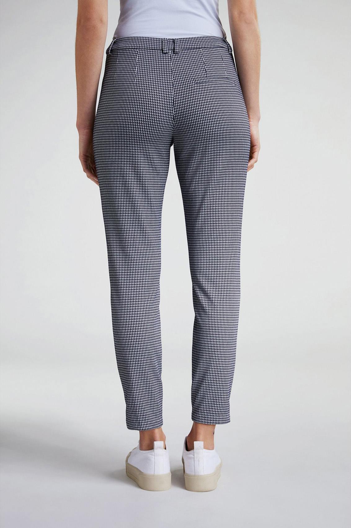 Прямые брюки средней посадки - совсем не скучная модель! Укороченная длина брюк позволяет продемонстрировать модную обувь. Стрелки делают образ более строгим. Классический клетчатый орнамент "гусиная лапка" является одним из современных трендов. В сочетании с лаконичным верхом эти брюки станут модным акцентом в вашем образе.