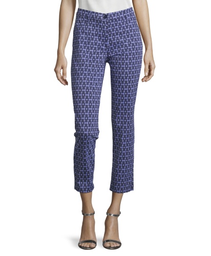 Графические принты в тренде! Брюки прямого кроя, средней посадки. Укороченная длина позволяет подчеркнуть модную обувь. Материал из хлопковой смеси приятен к телу и обеспечивает комфорт. Эти брюки великолепно смотрятся с любым лаконичным вариантом верха.