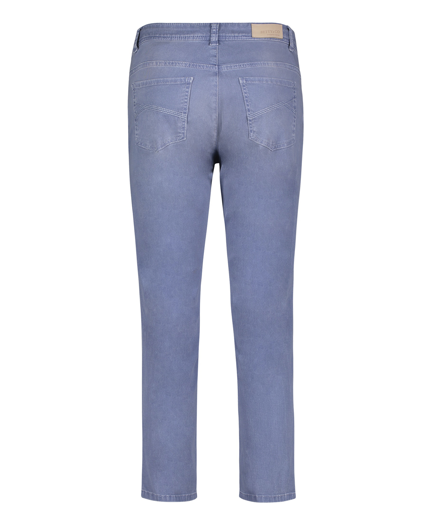 Брюки силуэта slim подчеркивают стройные ноги. Благодаря укороченной длине брюк вы можете сделать акцент на трендовой обуви. Модные джинсовые потертости. Приятный к телу и практичный материал из хлопковой смеси. Совершенно необходимая модель в летнем гардеробе!