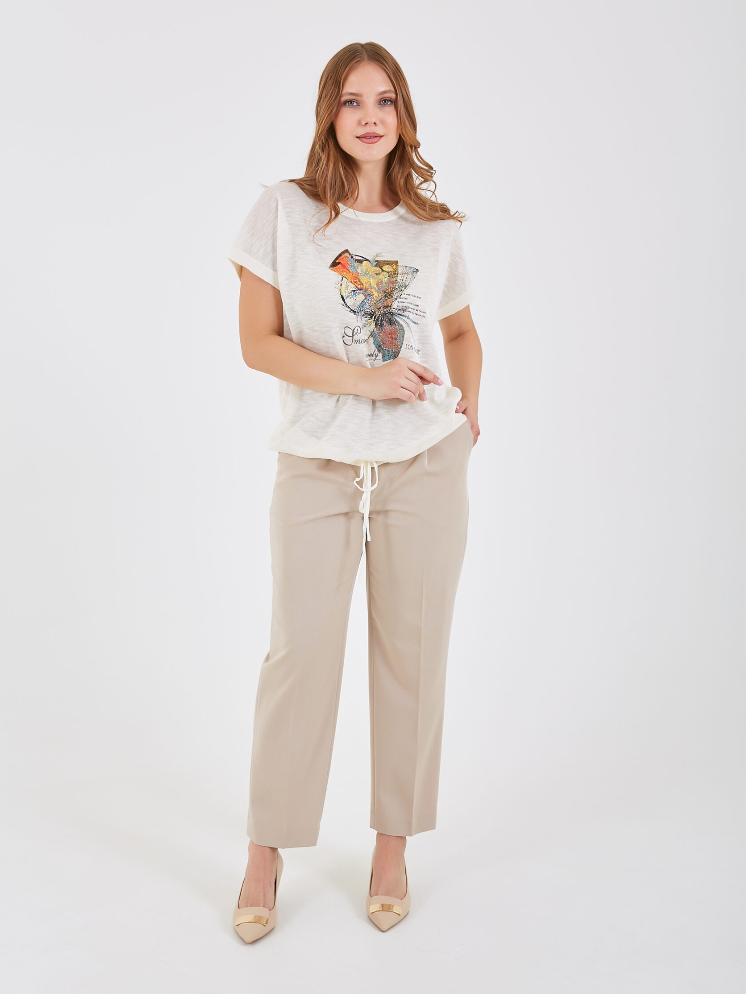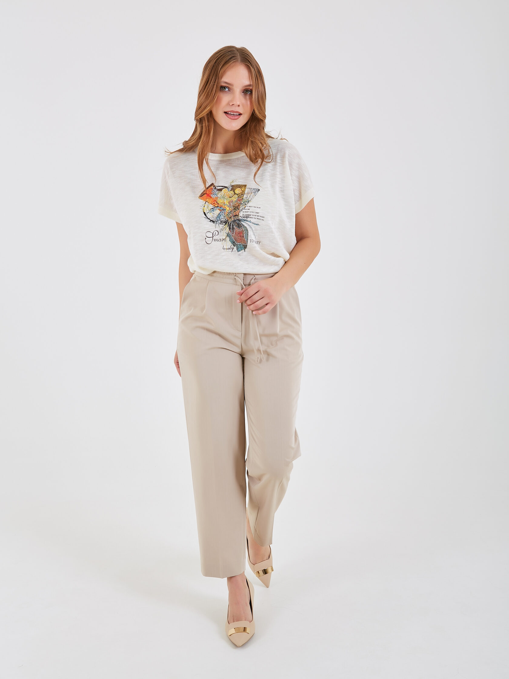 Брюки зауженные к низу с карманами и завязками на поясе. Весна-Лето 2025. Капсула "Рио де Жанейро". Параметры модели: 95-64-101, рост 175, размер 44-46