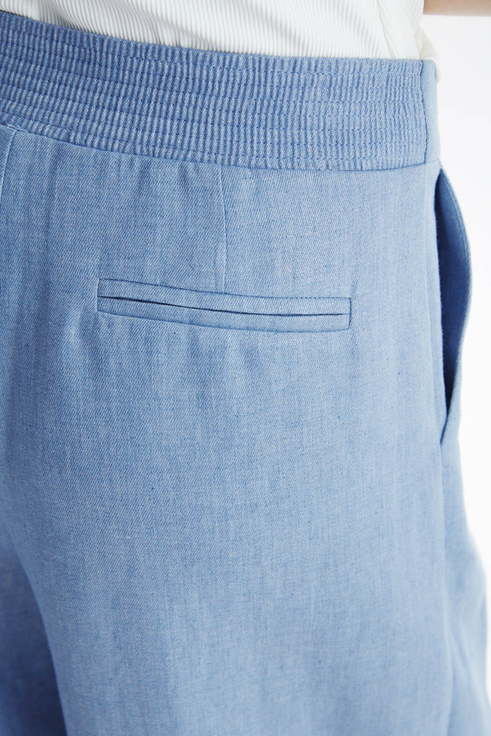 Брюки свободного кроя с широкой ногой. Светло-голубой оттенок брюк освежает образ, а легкая и дышащая ткань идеально подходит для весенне-летнего сезона, обеспечивая комфорт и свободу движения. Брюки идеально подходит как для прогулок по городу, так и для более формальных мероприятий, выражая уверенность и стиль.