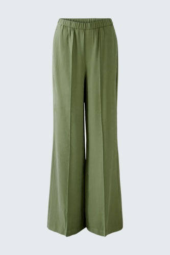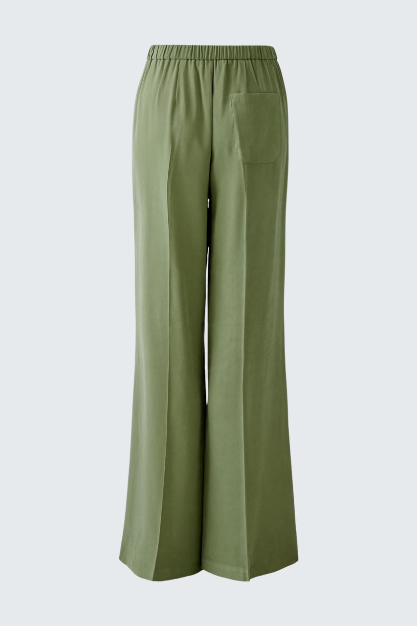 Брюки насыщенного оливкового оттенка, который придаёт образу естественный и свежий вид. Эластичный пояс обеспечивает удобную посадку, что делает брюки подходящими для любых случаев.