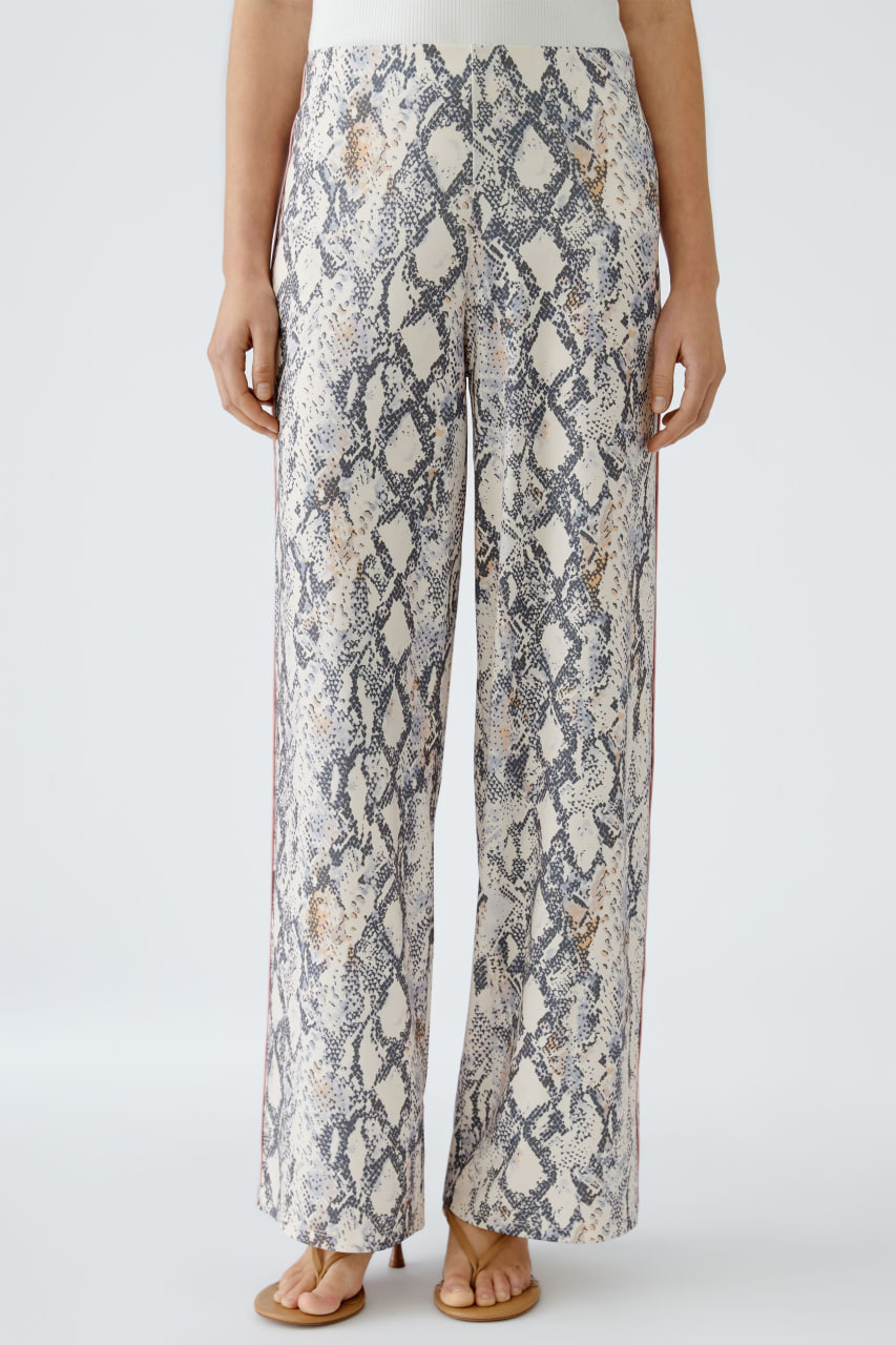 Брюки выполнены в классическом стиле с современным анималистическим принтом, что позволяет создавать как повседневные, так и более стильные образы. Материал обеспечивает комфорт при носке и простоту в уходе.