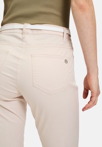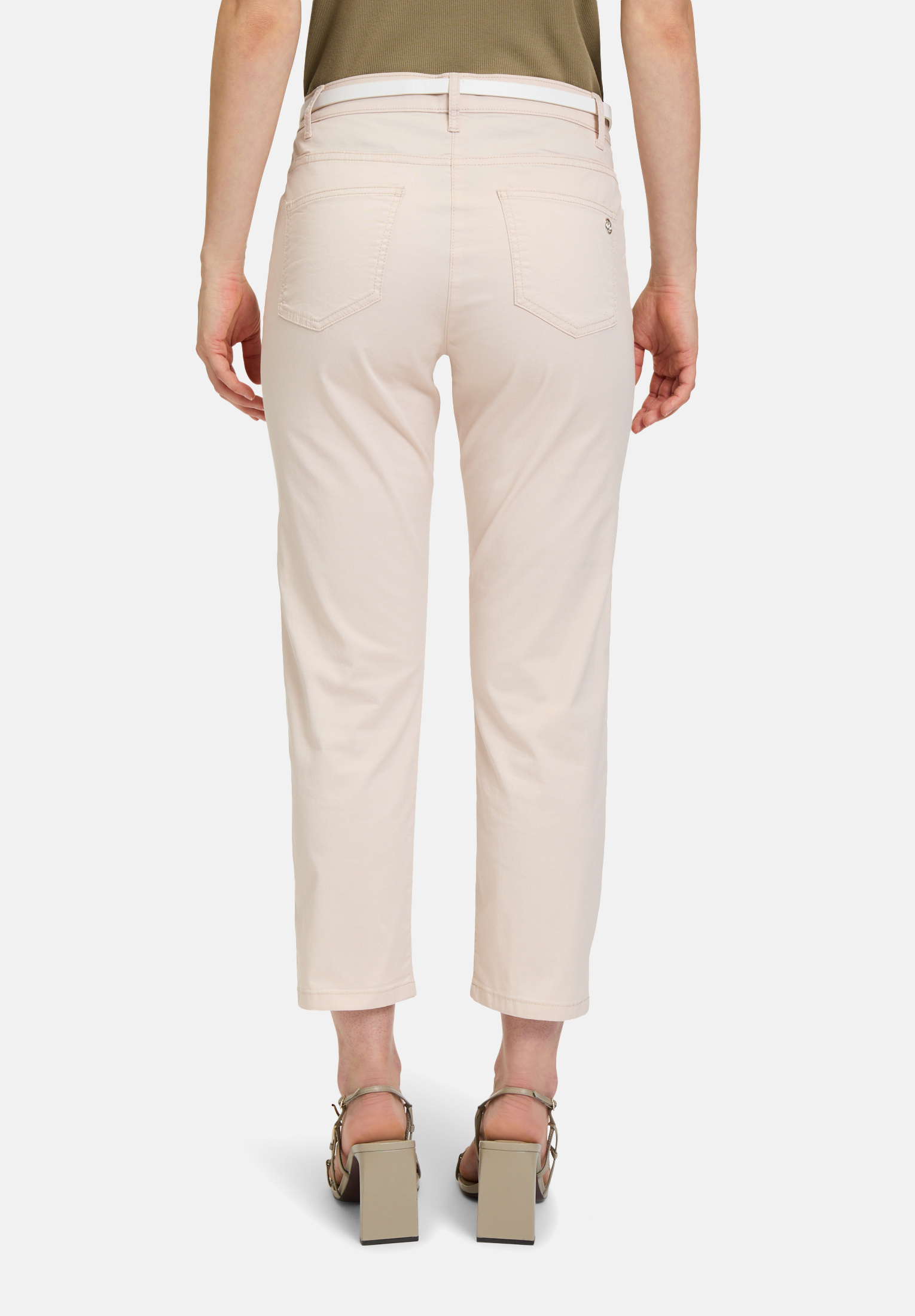 Летние брюки быстро станут фаворитами вашего гардероба! Благодаря облегающему крою и средней посадке они создают элегантный силуэт и обеспечивают исключительный комфорт. Простой, незамысловатый дизайн и практичный пояс придают им современный вид, а застёжка на пуговицы и молнию, а также классический дизайн с пятью карманами гарантируют функциональность. Универсальная базовая модель, идеально подходящая для летних образов!