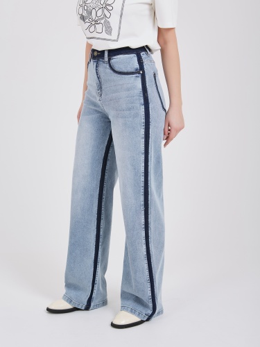 Джинсы поражают необычным эффектом выварки и двойным лампасом по внешним и внутренним швам, который заметно вытягивает силуэт и визуально увеличивает длину ног. Данная модель характеризуется высокой посадкой, полной длиной, прямой формой брючин и достаточно плотной тканью, что особенно актуально в осенне-зимний сезон. Эти джинсы прекрасно сидят на любой фигуре, подчеркивая ее преимущества и создавая стильный и современный образ. Осень-Зима'25/26. Капсула "Вино из одуванчиков"