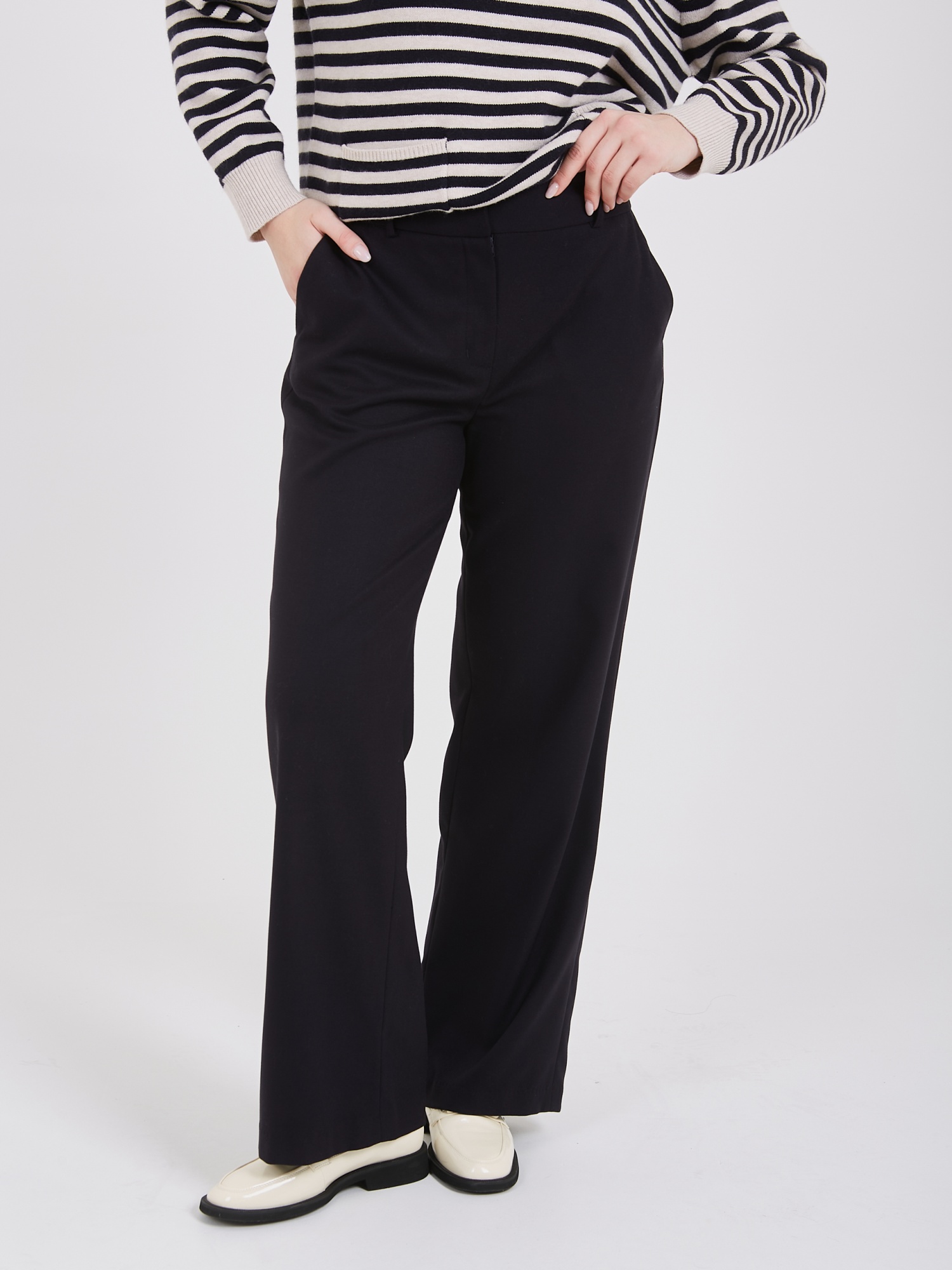 Черные брюки классического прямого кроя. Простота линий позволяет легко сочетать брюки с различными элементами гардероба, создавая стильные и гармоничные образы.