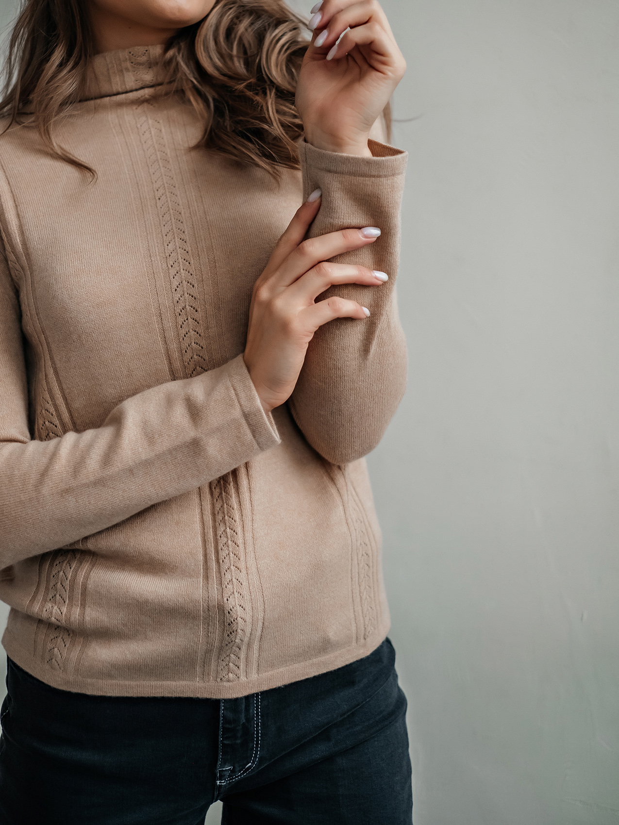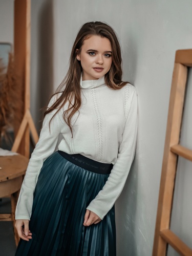 Лаконичный джемпер свободного покроя смело можно назвать базовой вещью. Воротник-воронка, рукава полной длины. Особый шарм данной модели придают ажурные элементы машинной вязки. Мягкий смесовый материал из шерсти и кашемира обеспечивает комфорт и сохранение тепла. Этот универсальный джемпер просто великолепен в сочетании как с брюками, так и с юбкой.