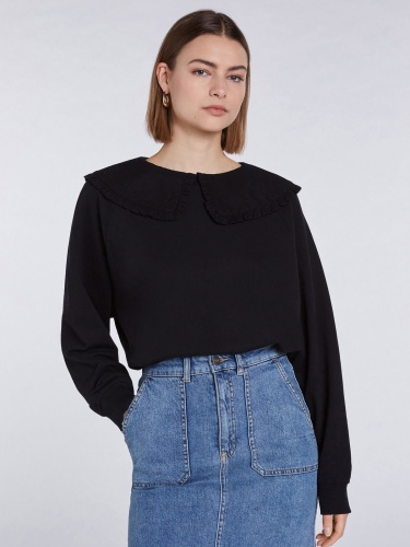 Повседневная толстовка оверсайз с эффектным воротником и рукавами реглан для стильного образа. Сзади разрез и пуговицы. Материал из органического хлопка высокого качества. Длина 42 российского размера: 60 см.