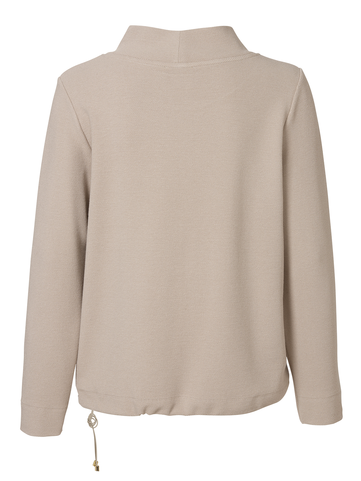 Базовый джемпер с широким воротником-стойкой. Свободный крой, кулиска по низу изделия. Длинный втачной рукав.