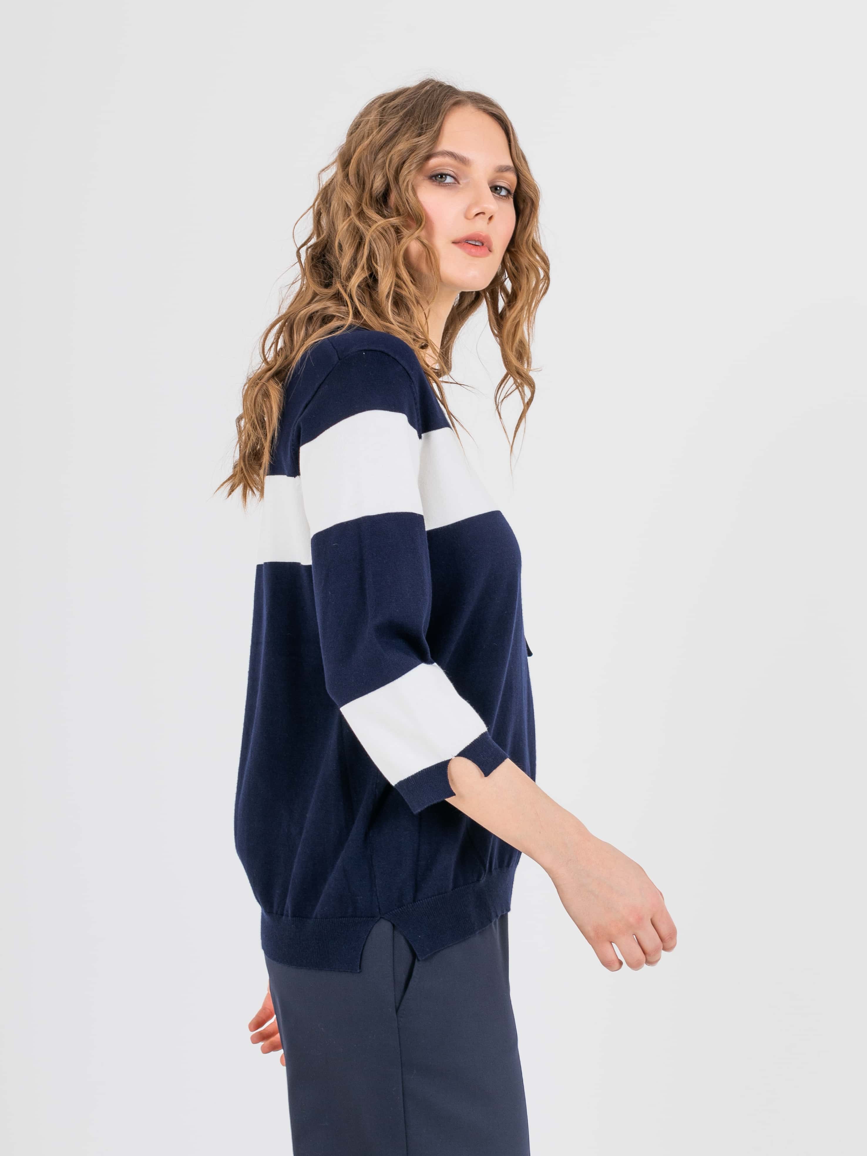 На сайте указаны российские размеры. Ткань: 60% вискоза, 35% нейлон. Крой: слегка приталенный джемпер из мягкой вискозы. Благодаря нейлону в составе изделие хорошо держит форму, не деформируется в процессе носки и стирки. Имеет достаточную длину, которая хорошо прикрывает область живота и часть бедер, что позволяет деликатно скрыть возможные недостатки фигуры. Отделка: в верхней части джемпера располагаются завязки, которые можно оформить в узел или в бант. Короткий рукав украшает изысканный круглый вырез, добавляющий романтичности всему образу. Найдите идеальную пару в разделах юбок, брюк и джинсов на нашем сайте.