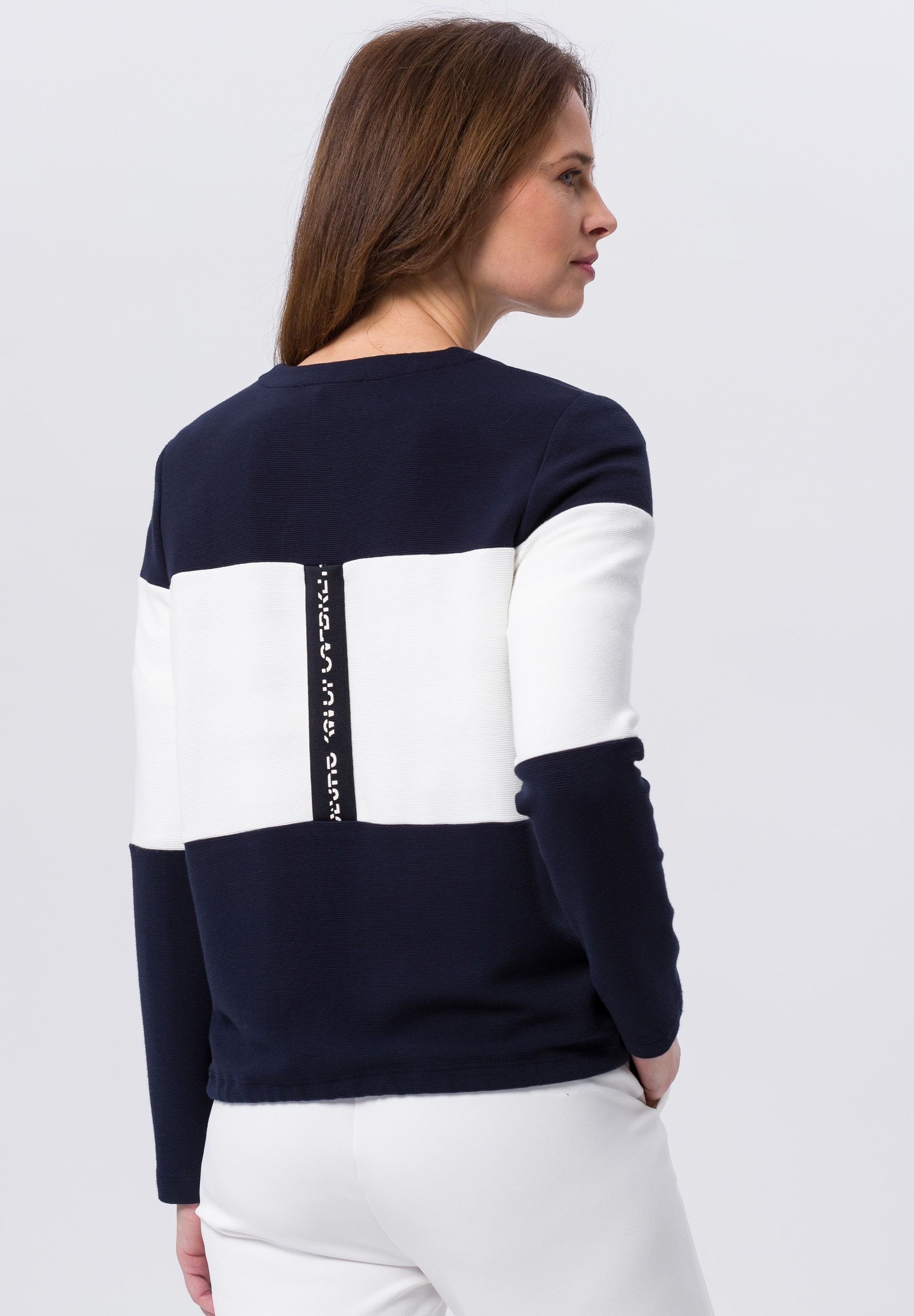 Двухцветный жакет из высококачественного структурированного трикотажа выглядит красиво и стильно. Удобная повседневная форма с круглым вырезом горловины, туннельной лентой и современной односторонней молнией.