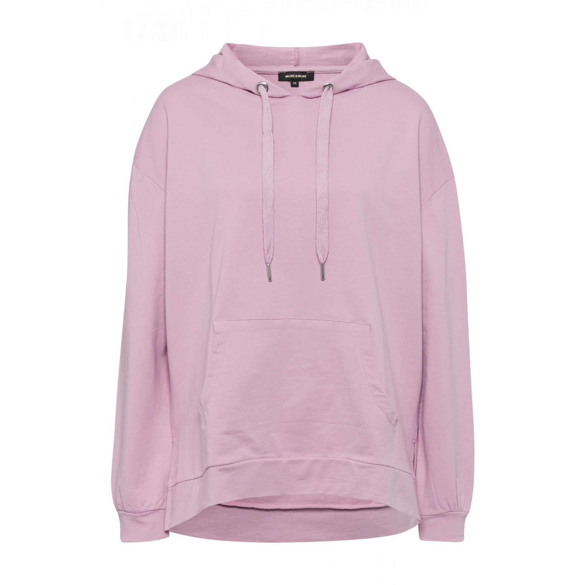 Толстовка свободной формы. Карман-кенгуру спереди. Капюшон с надписью "BONJOUR" на спине. Длинные рукава с манжетами. Длина в размере 42 = 64см