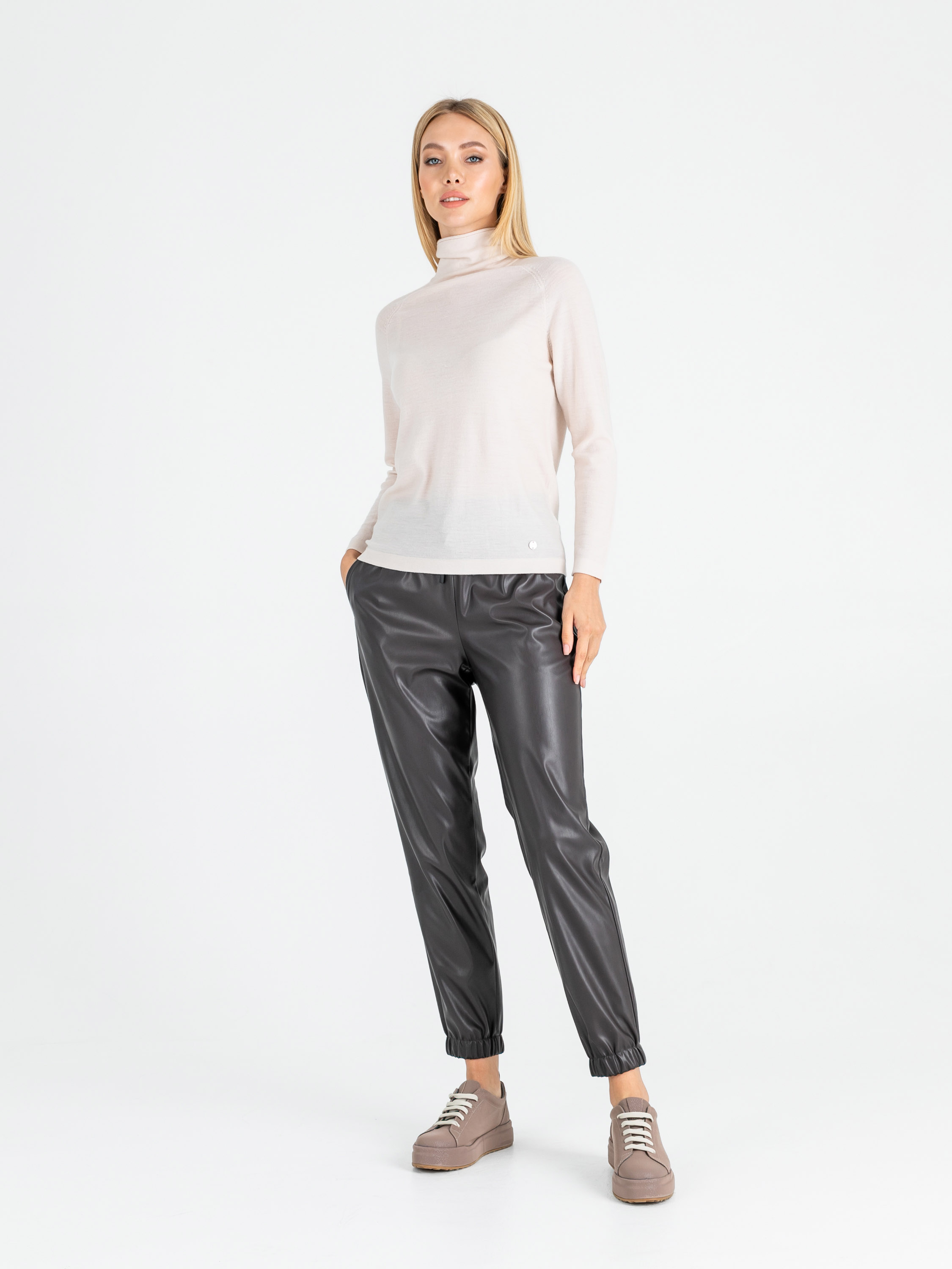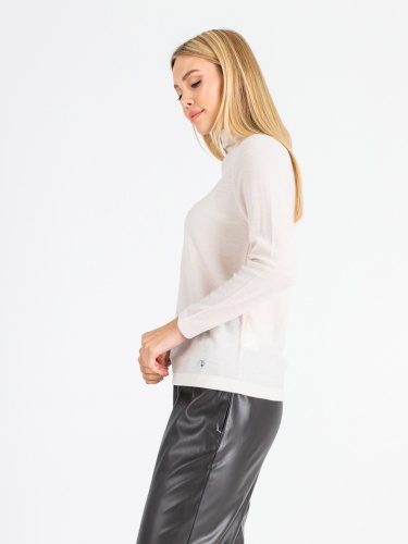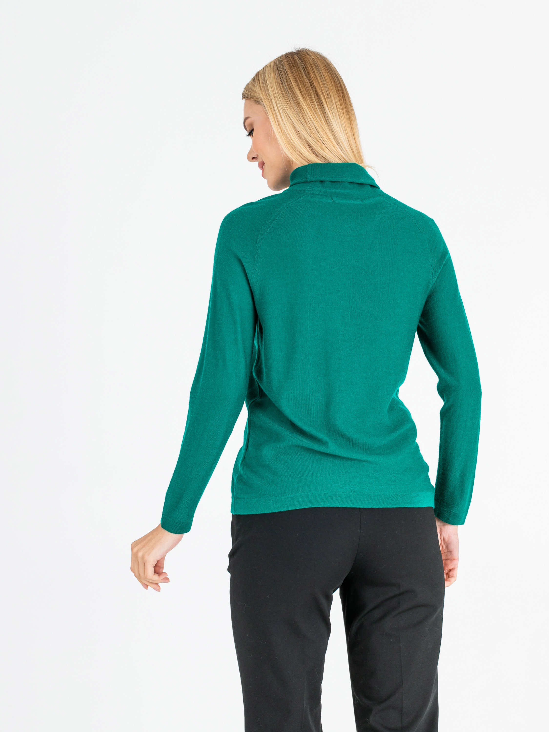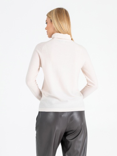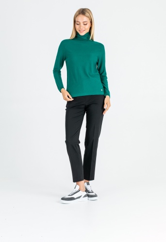 На сайте указаны российские размеры. Ткань: высококачественная 100% шерсть мериноса. Крой: слегка приталенный джемпер с высоким горлом по типу водолазки надежно защищает вас от холода и резких порывов ветра. Легкий, мягкий, приятный к телу он прекрасно садится по фигуре, подчеркивая ее достоинства. Не просвечивает, не подчеркивает нижнее белье. Представлен в двух стильных оттенках – изумрудно-зеленом и кремовом. Отделка: украшен круглым металлическим шильдиком, деликатно посвящающим окружающих в правильность вашего выбора. Базовая модель, сочетающаяся с любой деталью современного гардероба – брюками, юбками, сарафанами, кардиганами, джемперами. Рост модели 177 см