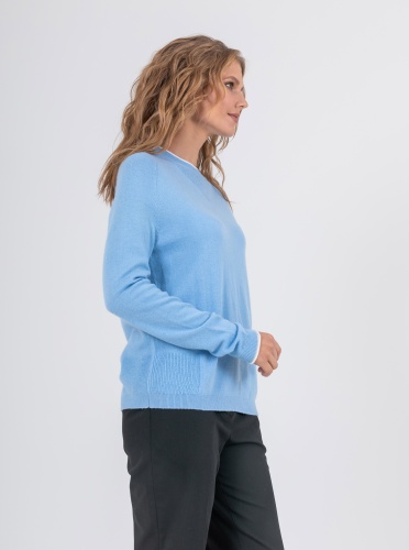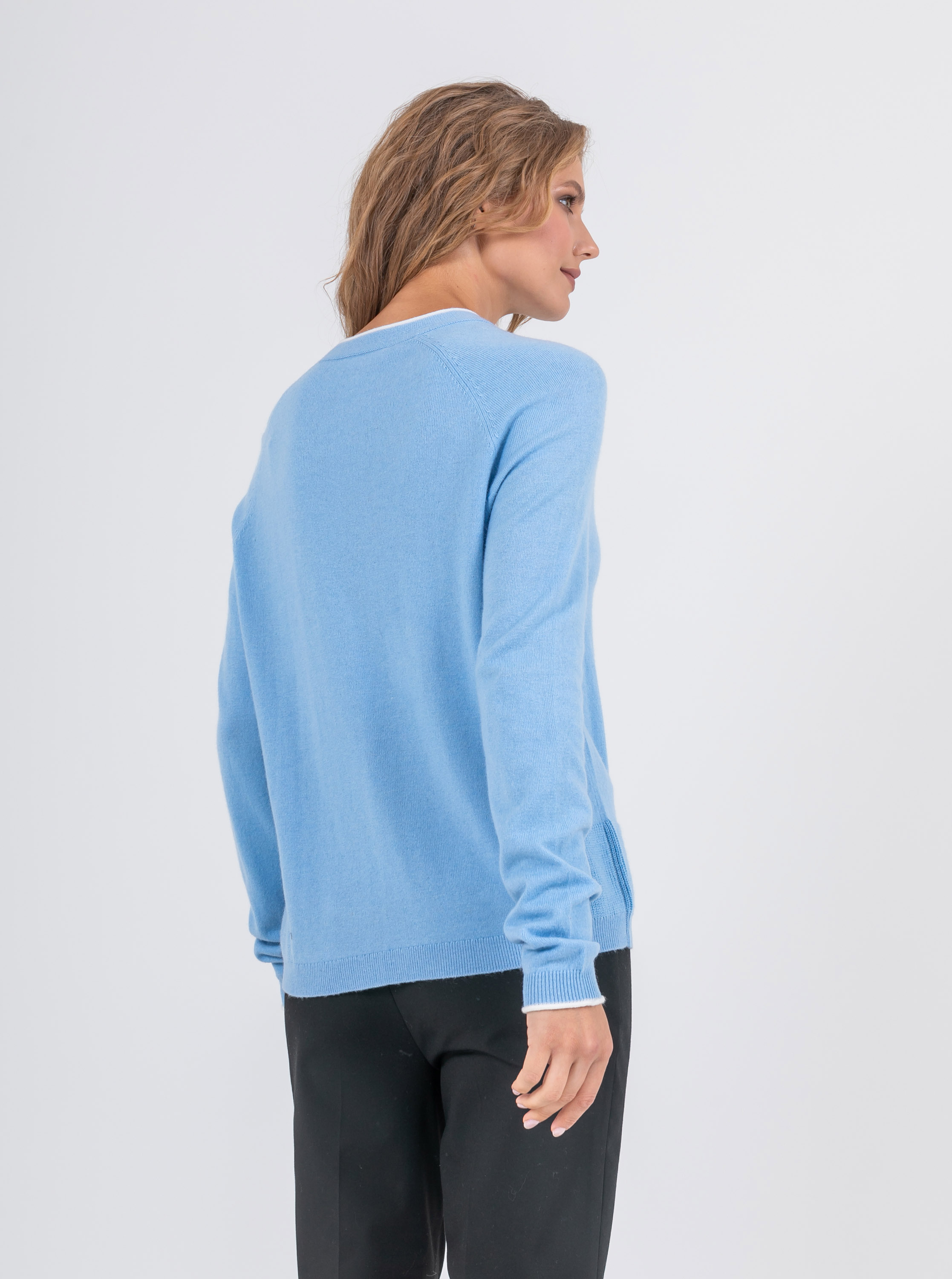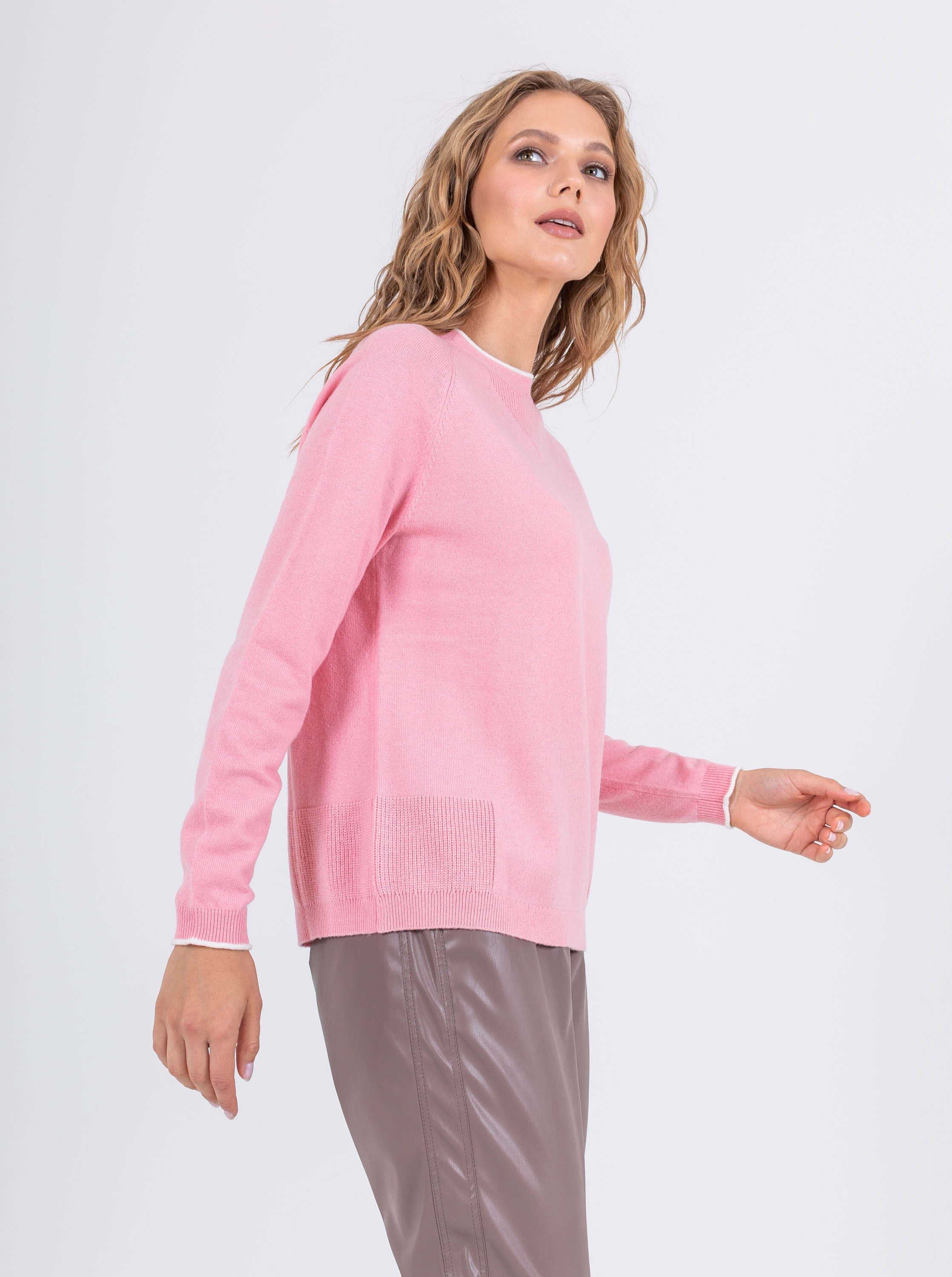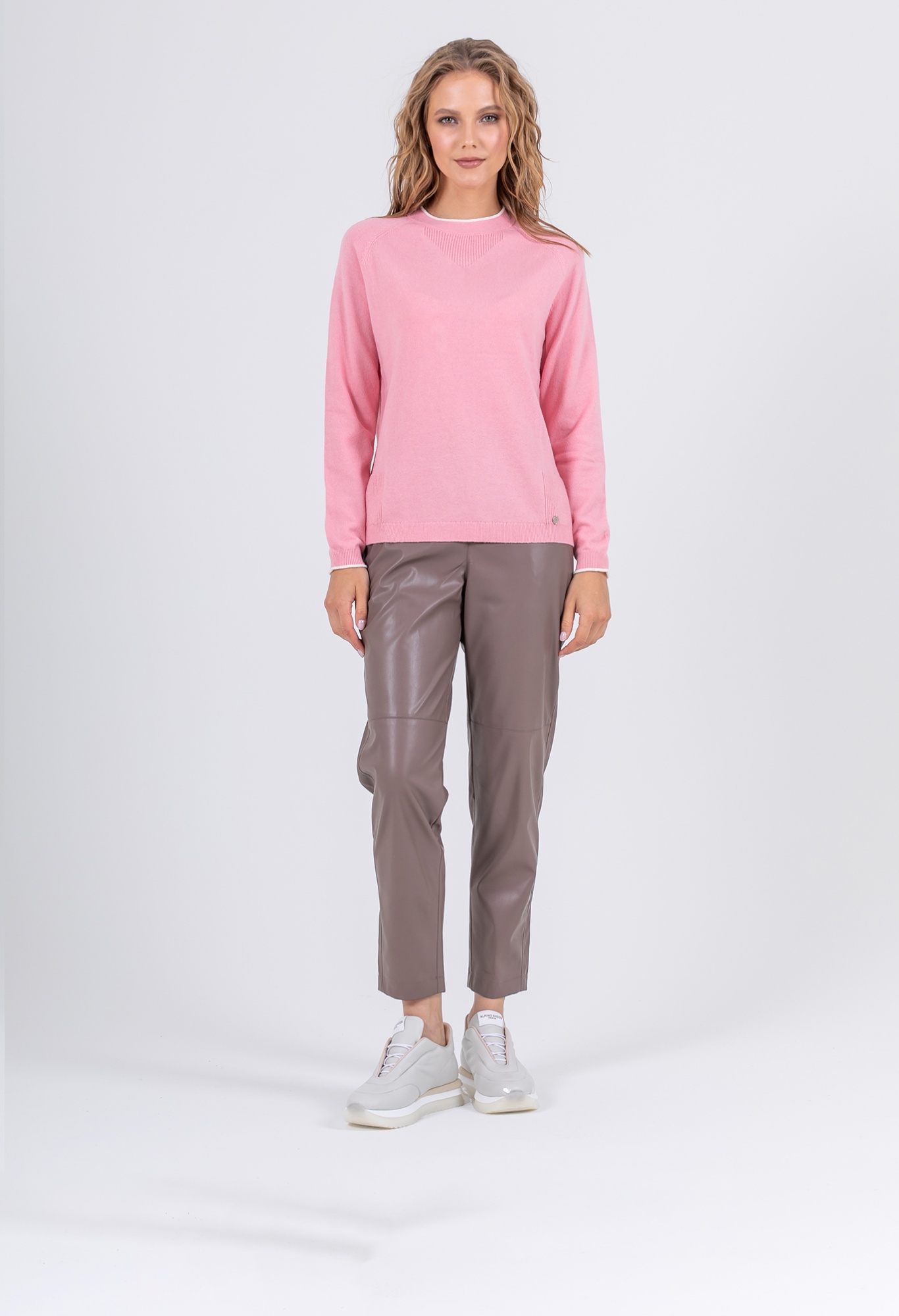 На сайте указаны российские размеры. Ткань: выполнен из смесовой ткани с добавлением шерсти (20%) и кашемира (5%) для непревзойденного тепла и уюта, а также вискозы (27%) и нейлона (48%) для эластичности, гладкости и сохранения свойств при стирке. Крой: джемпер средней длины прямого силуэта с круглым воротом. Базовая гладкая модель с длинным рукавом дарит тепло и уют, прекрасно садится на разные фигуры и гарантирует комфорт при движении. Отделка резинкой на манжетах и низе изделия обеспечивает прилегание к телу. Отделка: контрастная отделка рукавов и ворота делает образ современным и запоминающимся. Декоративные фактурные фрагменты в зоне ворота и по бокам смотрятся уместно и изысканно. Подберите идеальный низ в разделах юбок и брюк на сайте Stern.