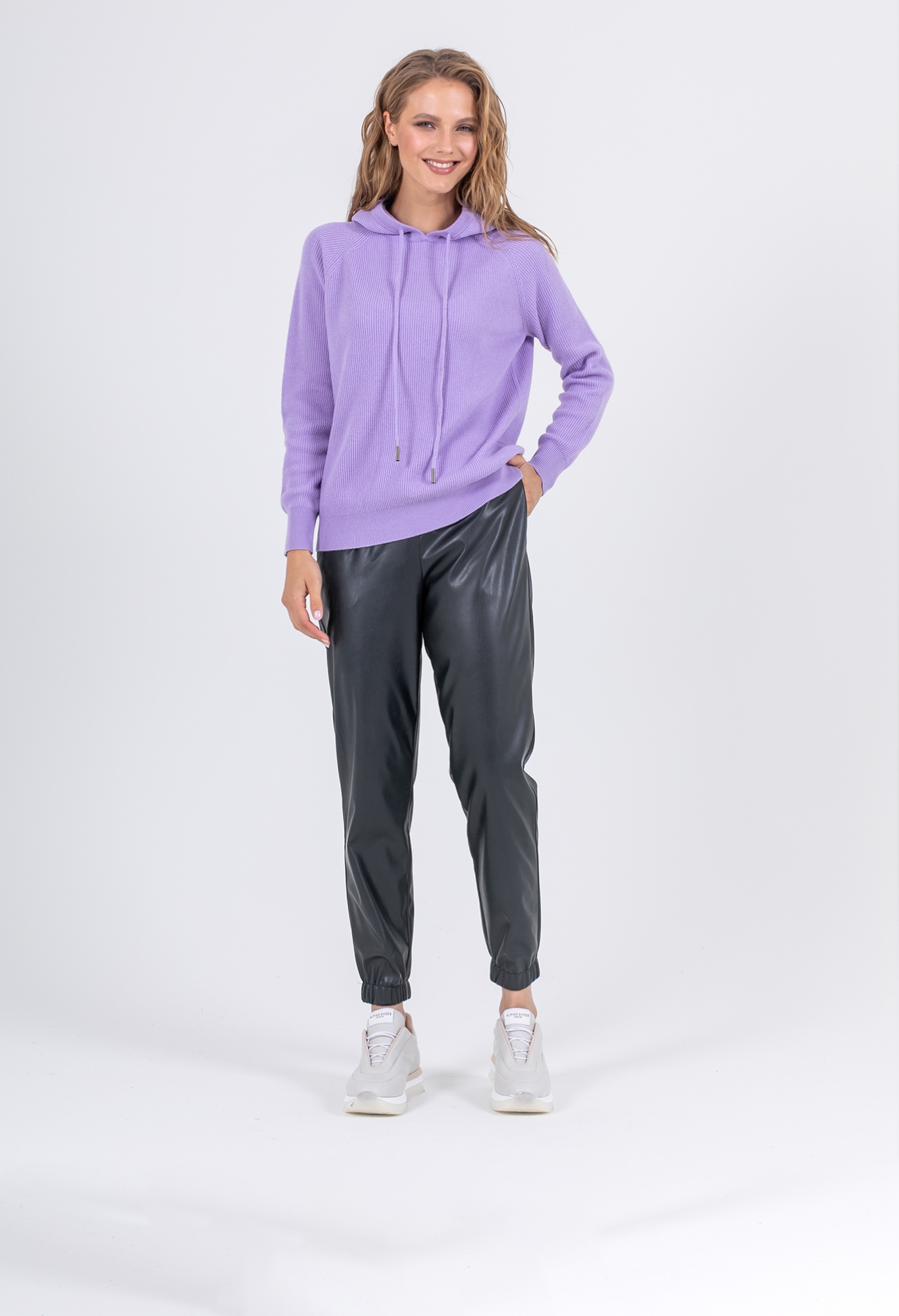 На сайте указаны российские размеры. Ткань: выполнен из качественной шерсти (50%), лиоцелла (25%) и нейлона (25%). Крой: уютный повседневный джемпер в стиле спорт-шик. Свободный силуэт дарит абсолютный комфорт и не сковывает движения, а красивая вязка резинкой обеспечивает максимальное прилегание к телу, что особенно актуально зимой. Отделка: глубокий капюшон надежно фиксируется завязками, поэтому вы легко сможете использовать его зимой в качестве альтернативы шапке. Завязки украшены серебряными металлическими эглетами. Сочетайте как с базовыми и классическими вещами, так и с деталями в спортивном стиле.