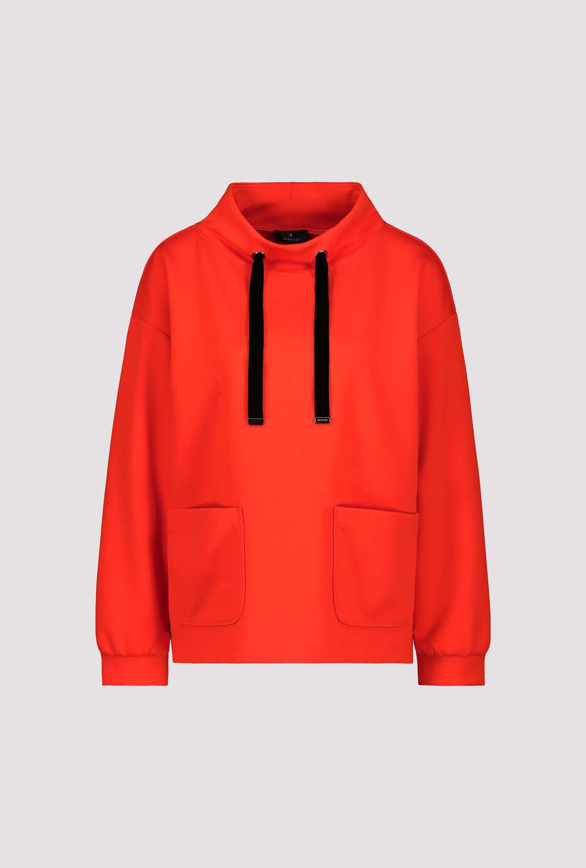 На сайте указаны российские размеры. Повседневная толстовка с длинными рукавами от monari выполнена в мягком, приятном на ощупь, эластичном и женственном стиле. Классический крой с воротником-стойкой, манжетами с воланами и заниженной линией плеча. Два накладных кармана и бархатные ленты на воротнике искусно украшают перед. Заявите о себе с помощью этой модной вещицы. Модель ростом 178 см.