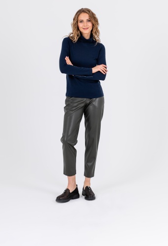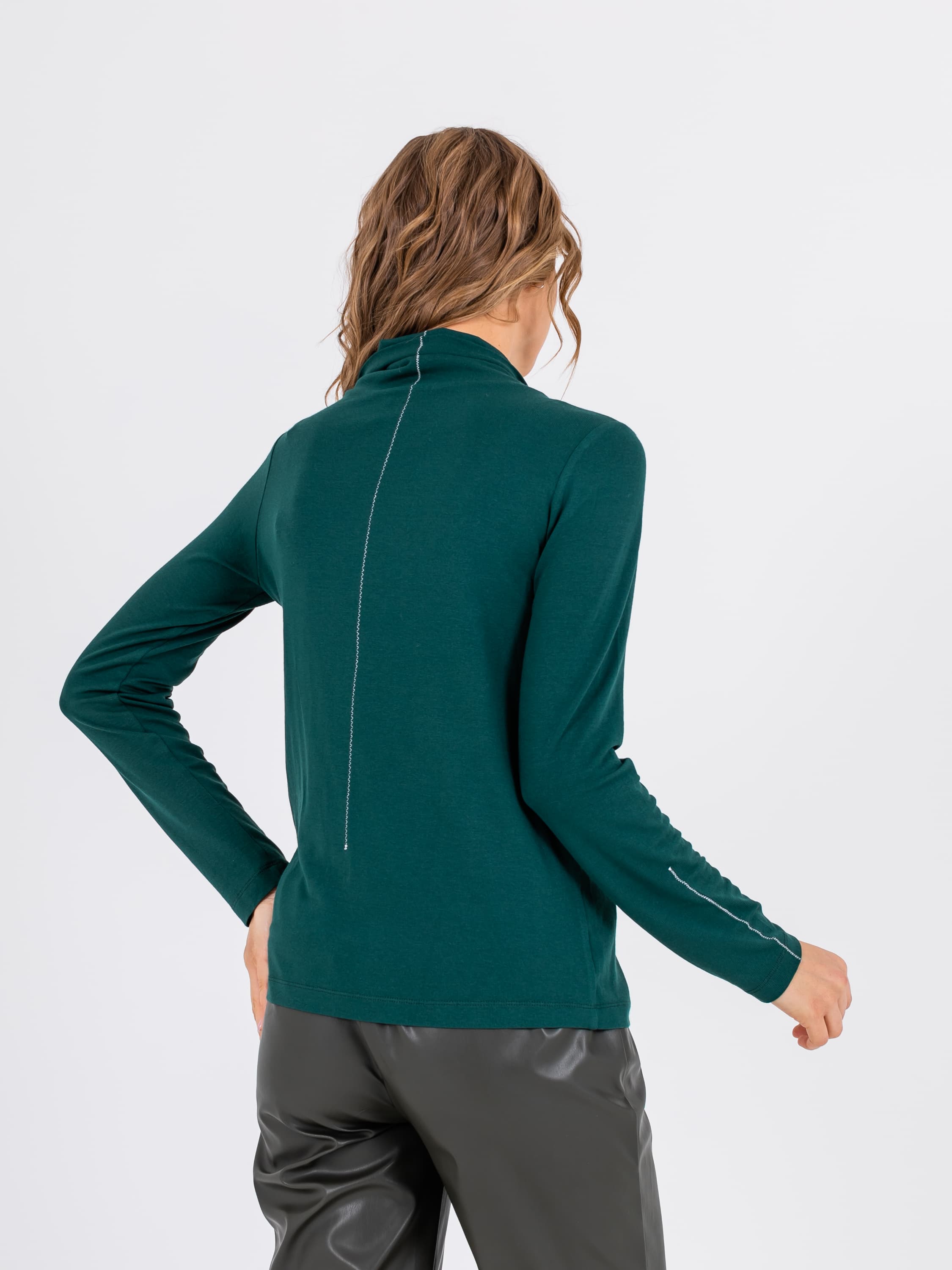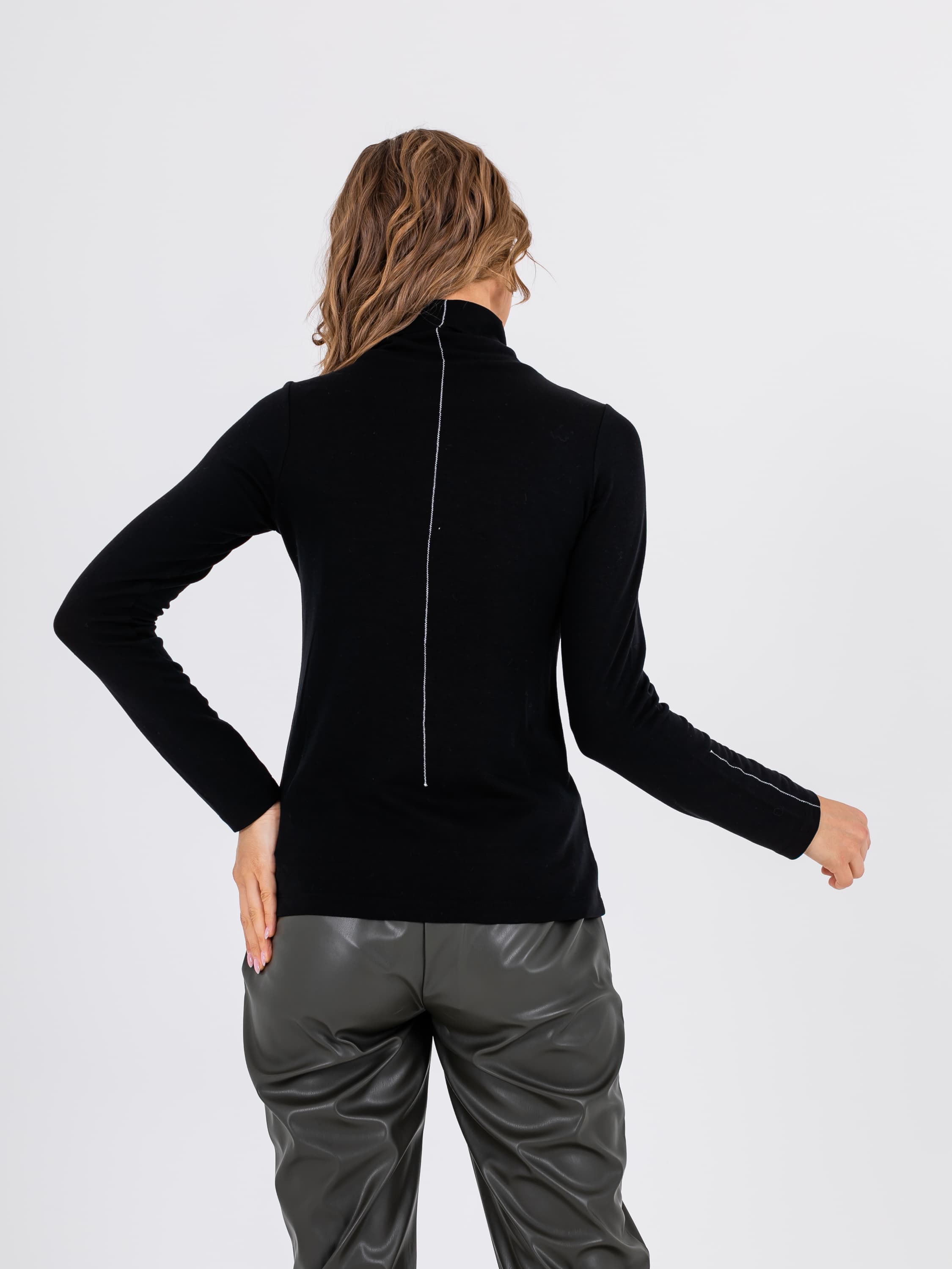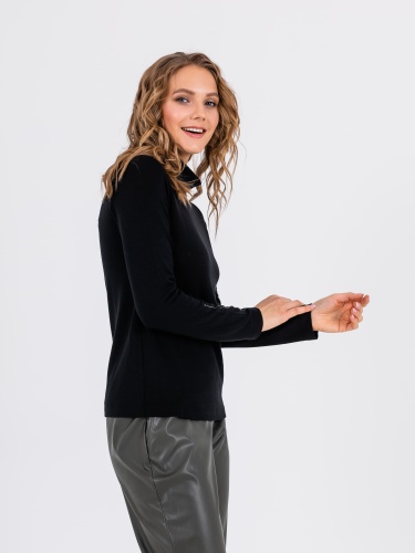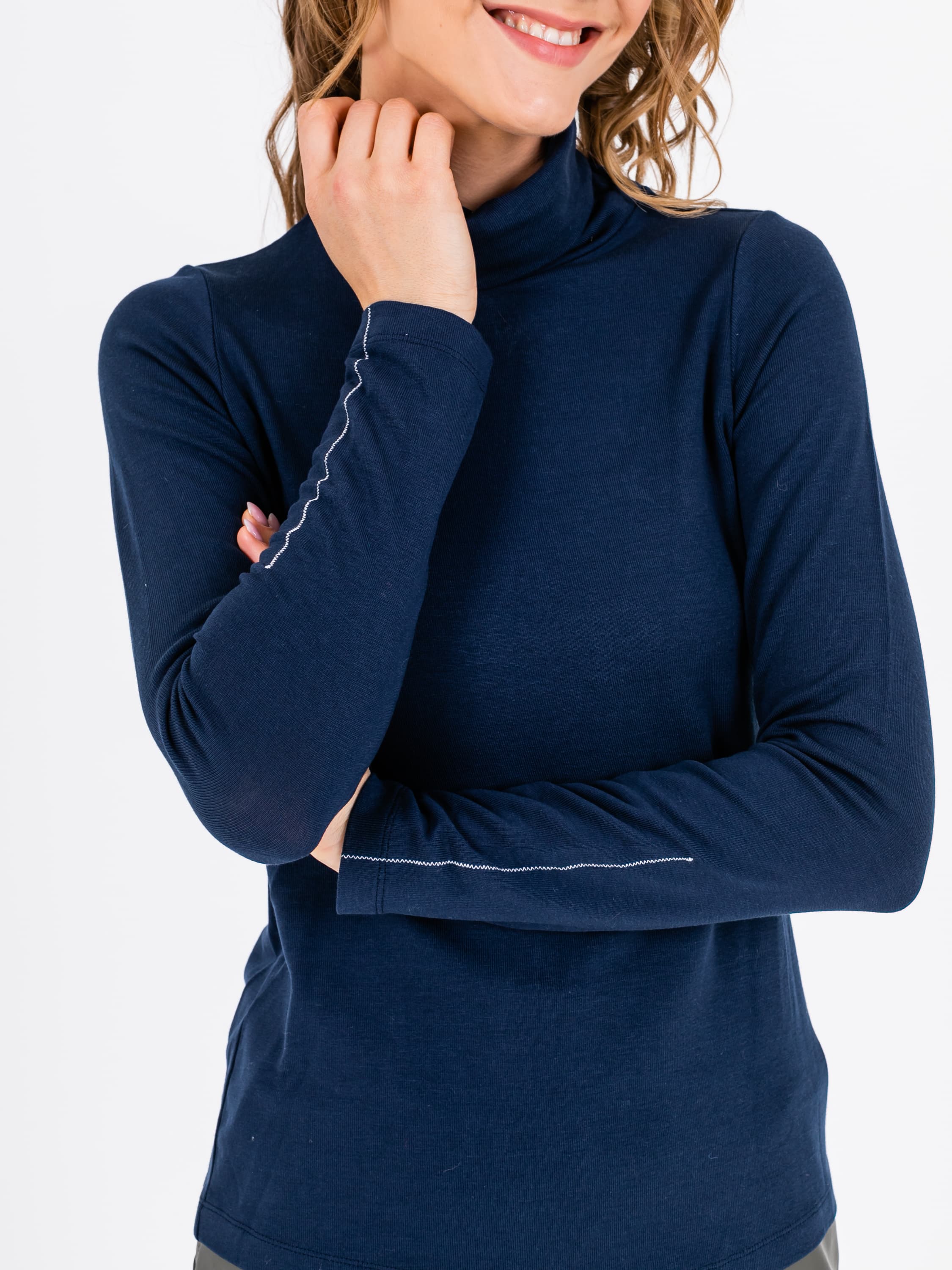 На сайте указаны российские размеры. Ткань: эластичная водолазка из комфортного и приятного в носке натурального тенсела (лиоцелла). Крой: приталенная водолазка с длинным свободным рукавом и подвернутым горлом – красота и тепло в действии. Достойная длина надежно прикрывает линию живота, изделие не поднимается при ходьбе и движении. Отделка: яркими элементами служат контрастные линии на конце рукавов и на спине водолазки. Они добавляют настроения и создают вертикаль, визуально удлиняющую силуэт. Универсальная модель удачно сочетается с джинсами и кожаными брюками, юбками, куртками, джемперами и пальто из коллекции Stern. Рост модели 175 см