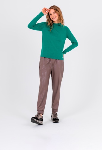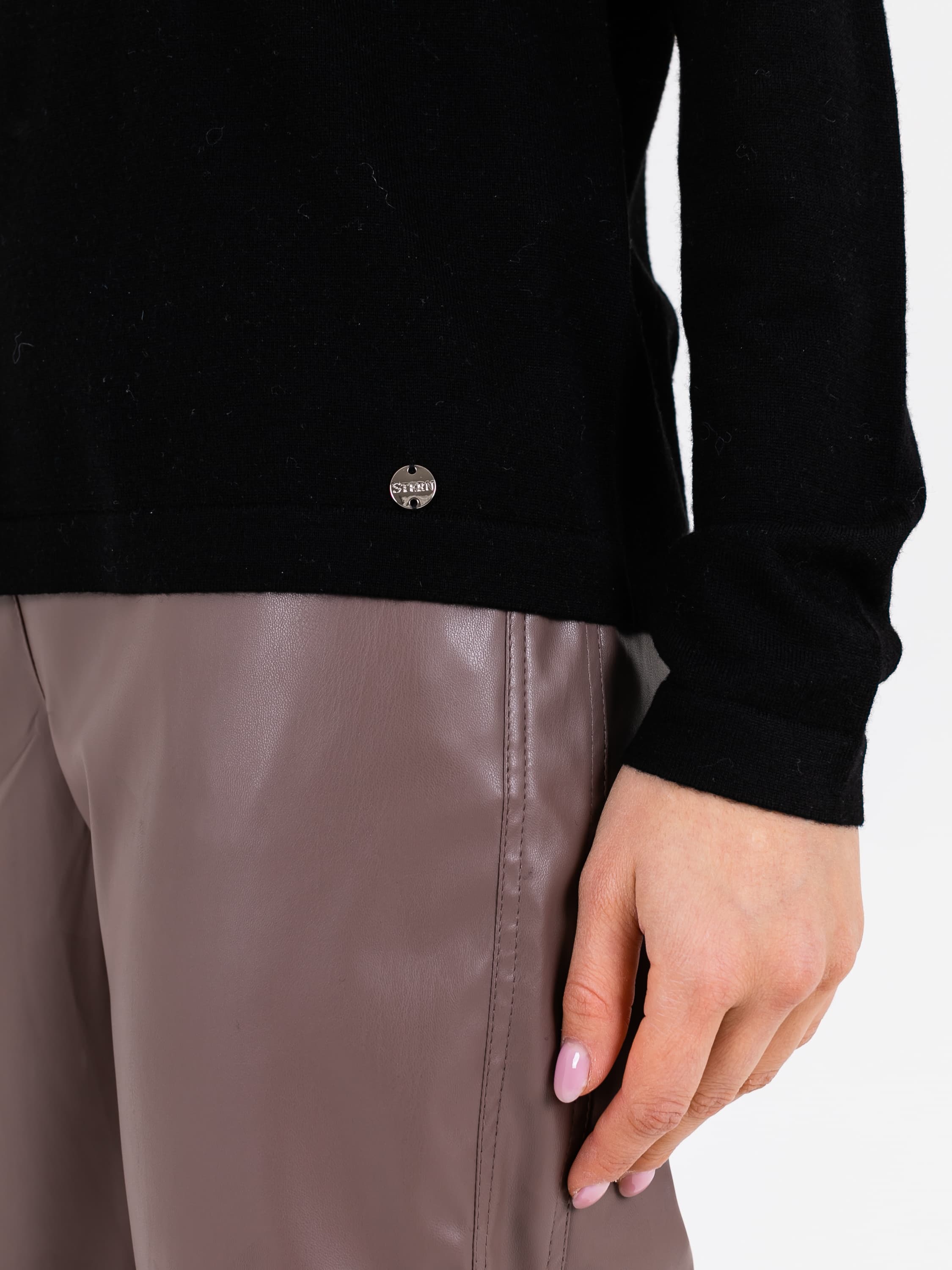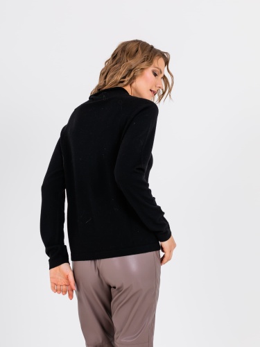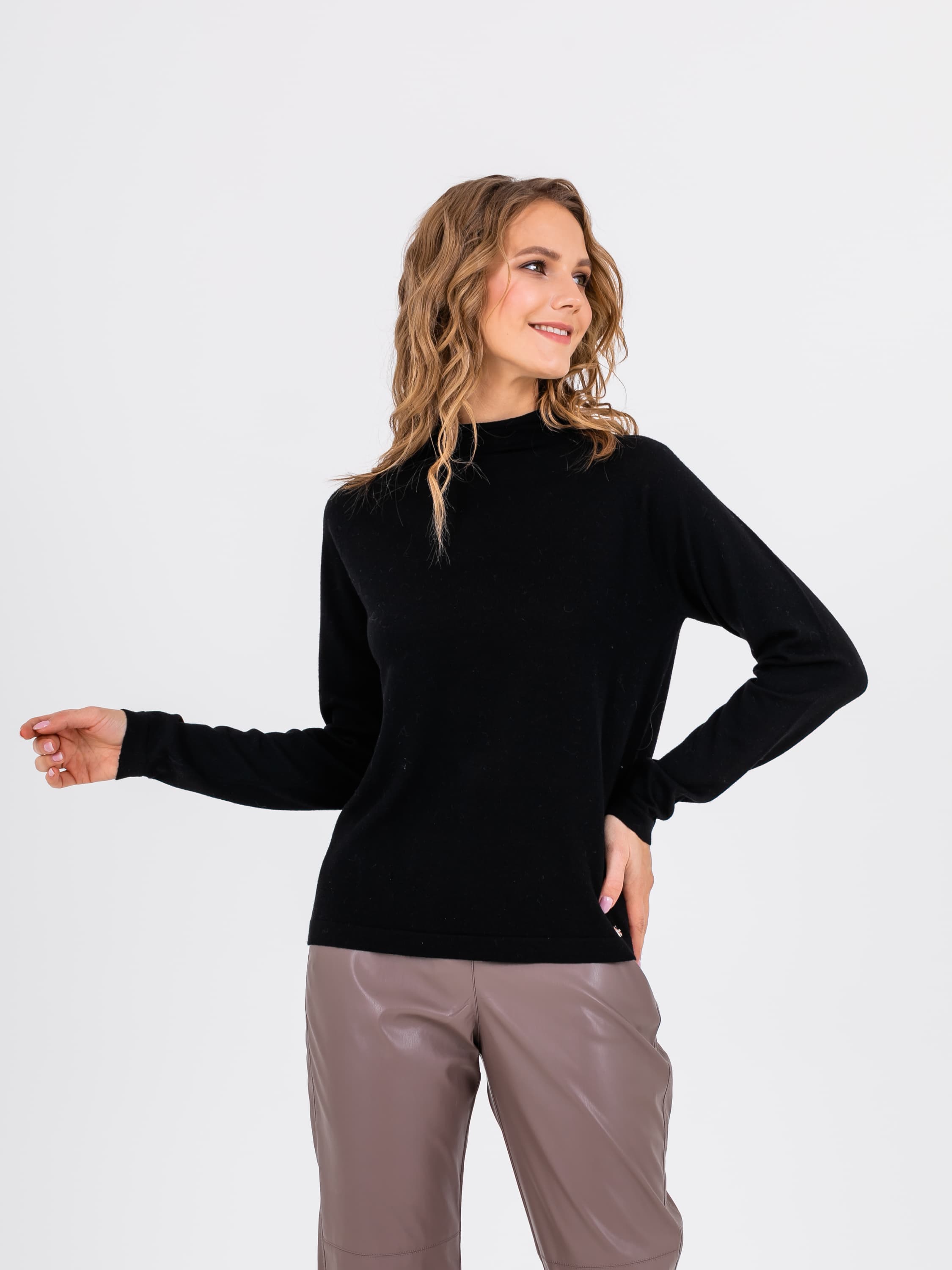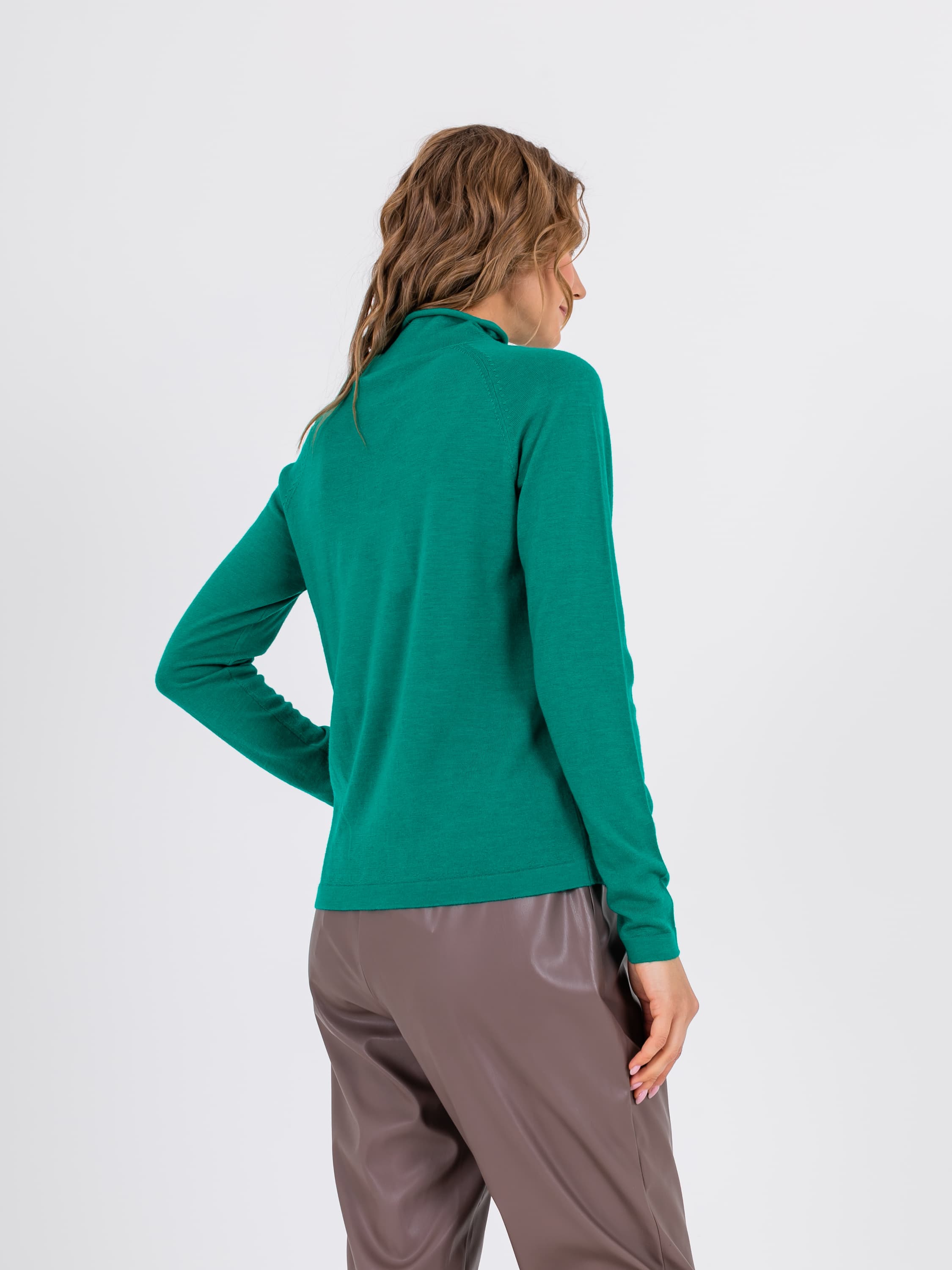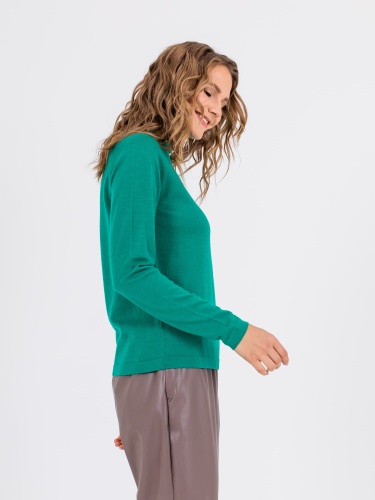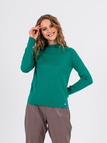 На сайте указаны российские размеры. Ткань: выполнен из 100% шерсти, которая прекрасно сохраняет тепло, пропускает воздух и впитывает влагу. Крой: джемпер гладкий из мягкой 100% шерсти. Прекрасно садится по фигуре, подчеркивает ее достоинства и выразительные части. Тонкий, но теплый, он может стать первым слоем под рубашку, жакет или куртку. Имеет достойную длину, которая надежно закрывает зону живота, не поднимается вверх при движении. Представлен в двух благородных цветах – черном и бутылочном зеленом. Отделка: украшен фирменным шильдиком. Сочетается с базовыми классическими вещами – брюками, юбками, жакетами, джемперами и куртками.