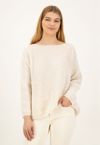 На сайте указаны российские размеры. Повседневный вязаный свитер свободного покроя. Сочетание высококачественных материалов делает свитер приятным и мягким в носке. Благодаря тонкой и асимметричной структуре вязания свитер с круглым вырезом станет повседневным деталью для непринужденного образа. Рост модели: 177 см. Измерения для 46 размера : Окружность груди: 62 см Бедра: 58 см Длина по спинке: 58 см. Длина рукава: 60 см.
