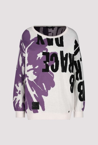 На сайте указаны российские размеры. Хлопковый вязаный свитер с круглым вырезом и стразами. Большой жаккард с цветочным узором и надписью прекрасно сочетается со сверкающими деталями из страз в буквах. Широкие манжеты на рукавах и по низу завершают дизайн. Прямой фасон отличается круглым вырезом горловины, слегка приспущенной линией плеч и боковым швом спереди. Спереди нашивка с вышивкой и сверкающими стразами. Абсолютное зрелище. Идеально сочетается с кожаными брюками и высокими ботильонами. Рост модели 176 см. Длина по спинке 44 размера составляет 73 см, а по переду – 70 см.