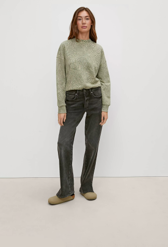 На сайте указаны российские размеры. Укороченный джемпер из мягкой ткани с анималистичным принтом. Круглый вырез горловины с отделкой в рубчик. Длинные рукава с ребристыми манжетами. Эластичный низ, с отделкой в рубчик. Длина спины: 56 см в размере 42. Рост модели 176 см.