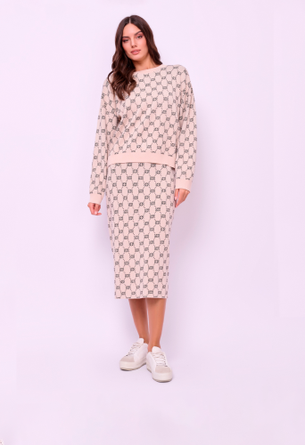 Детали: вырез горловины округлый, рукава длинные, покрой прямой, рисунок орнамент из надписей. Длина по спинке: 55 см.
