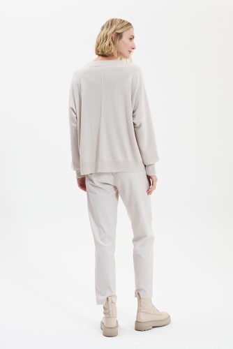 Трикотажный джемпер из смеси кашемира с круглым вырезом горловины. Передние и задние швы с припуском.