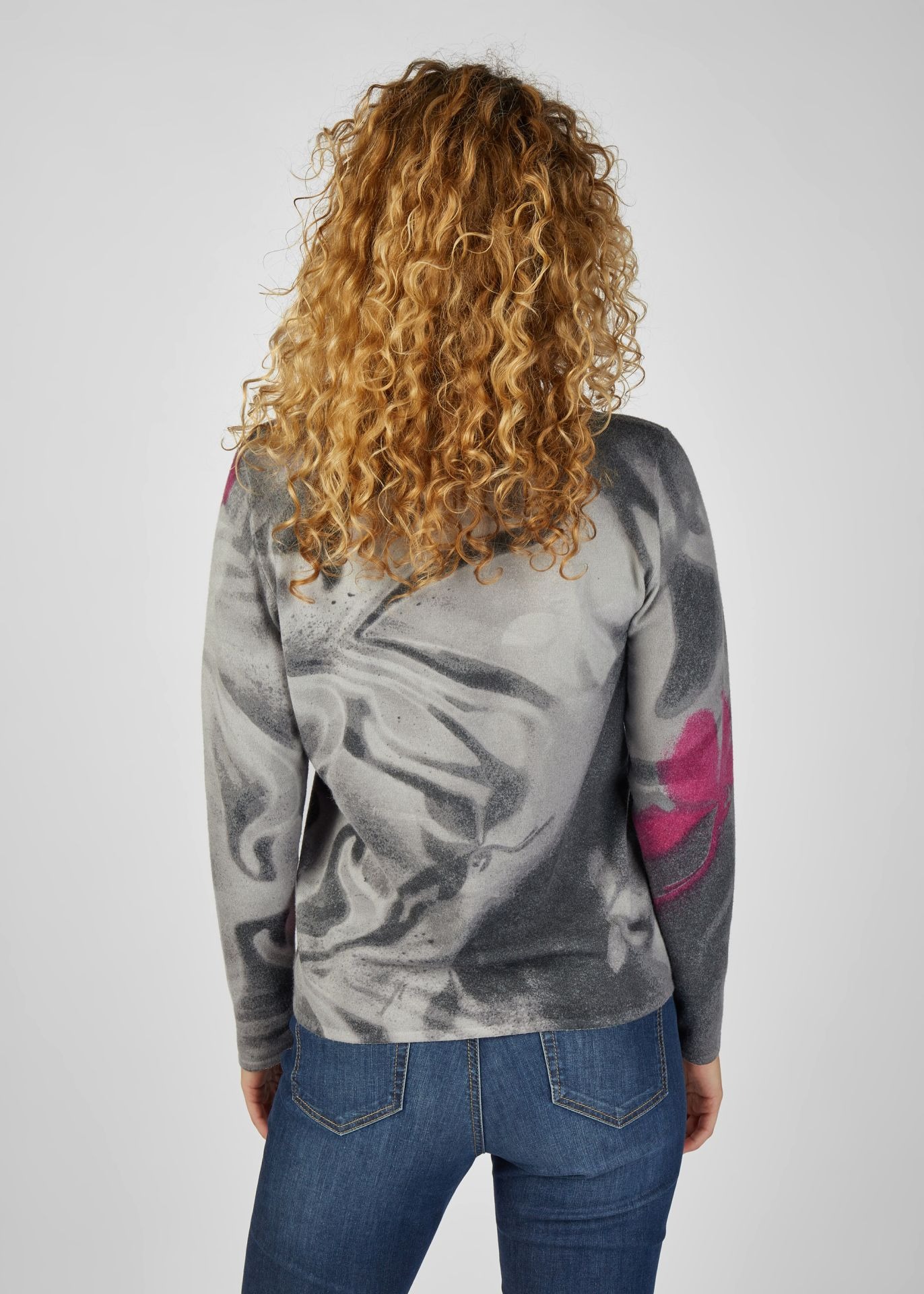 Стильный свитер сочетает в себе комфорт и элегантность. Высококачественный трикотаж согреет и создаст уют, а модный узор придаст вашему образу особую индивидуальность. Общая длина для размера 44: 62 см.