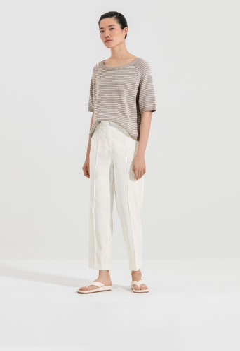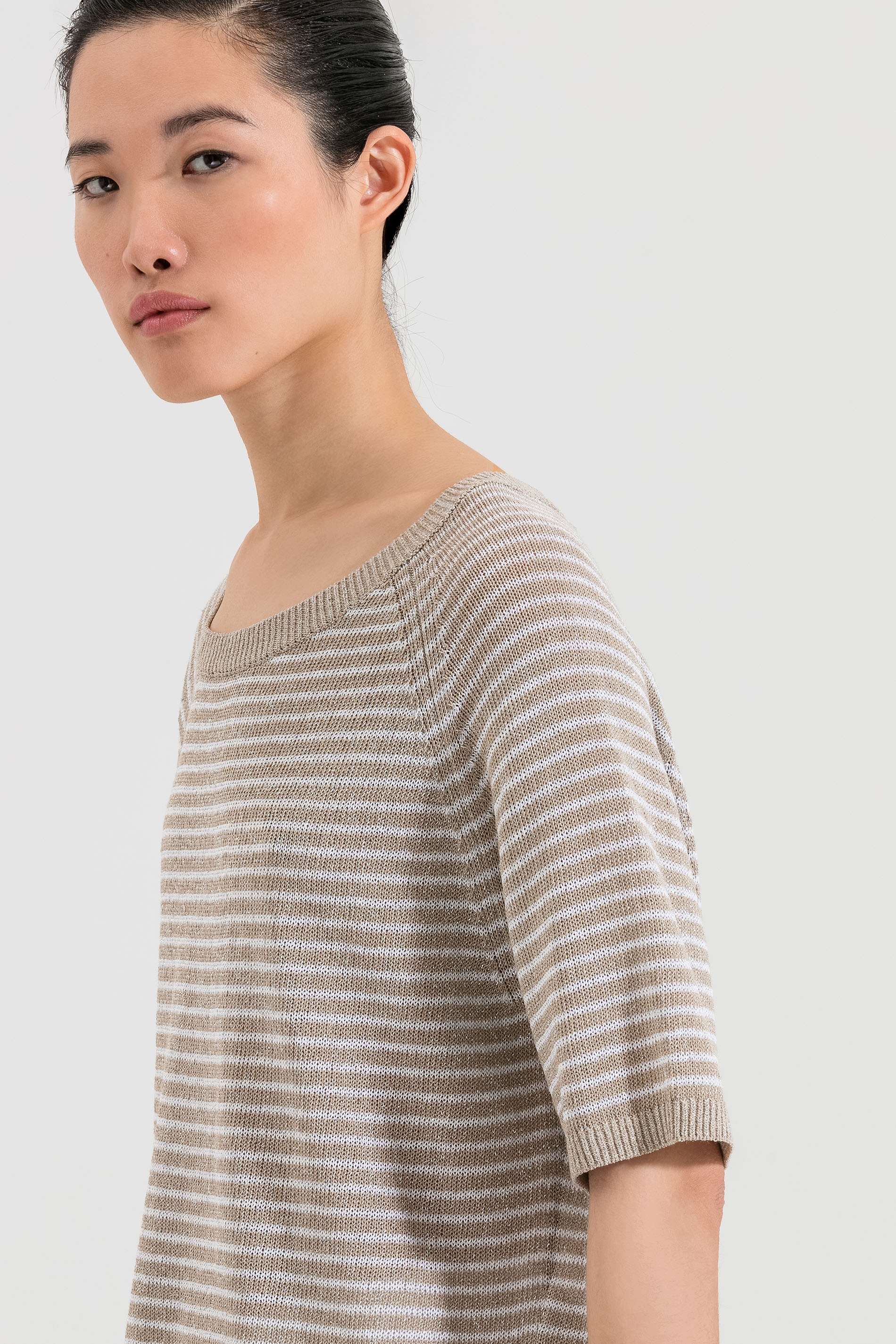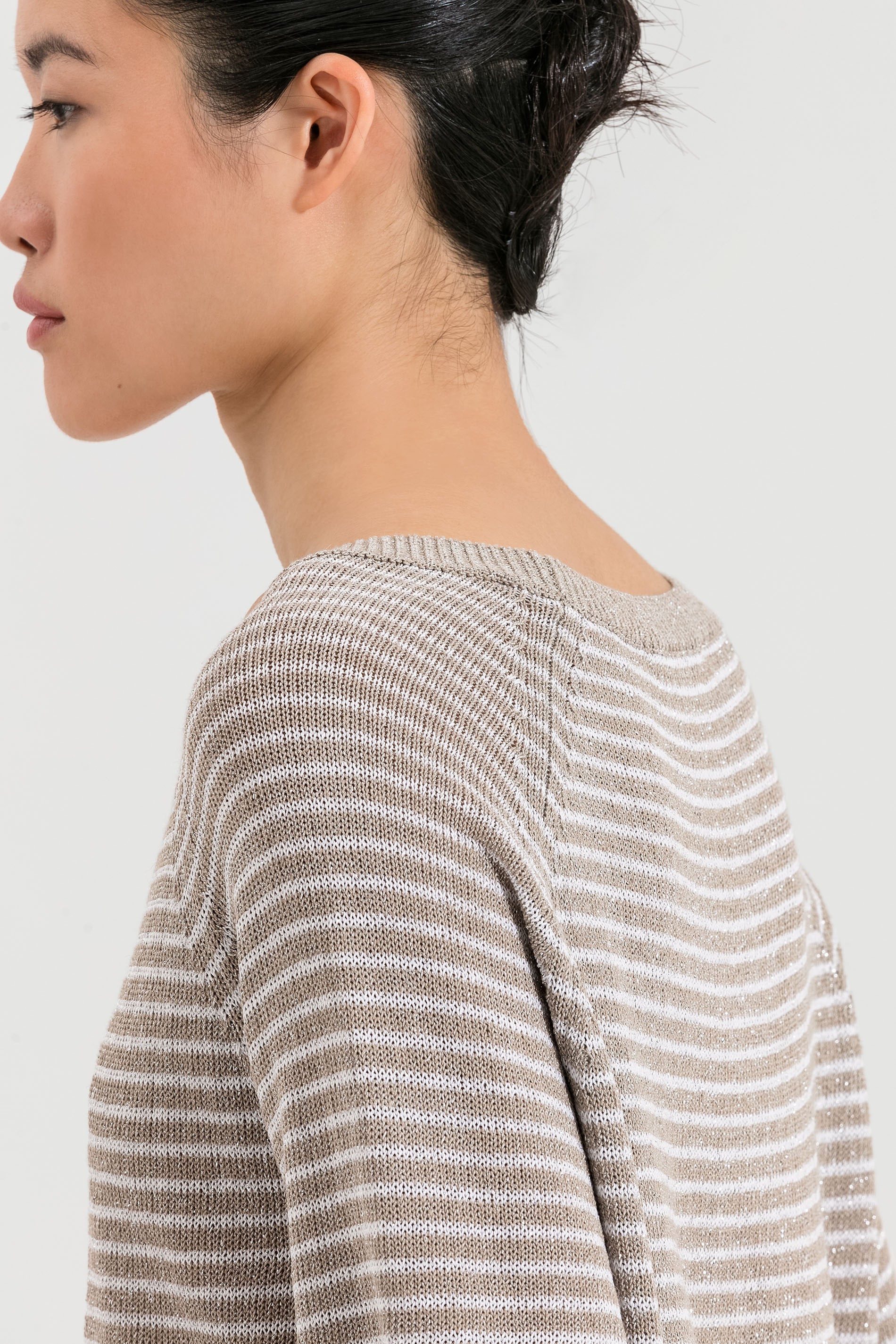 Hемецкий бренд. На сайте указаны Российские размеры. Полосатый джемпер из струящегося смесового хлопка с эффектными бликами из блестящей пряжи. Заниженная линия плеча и рукава реглан дополняют повседневный свободный стиль.