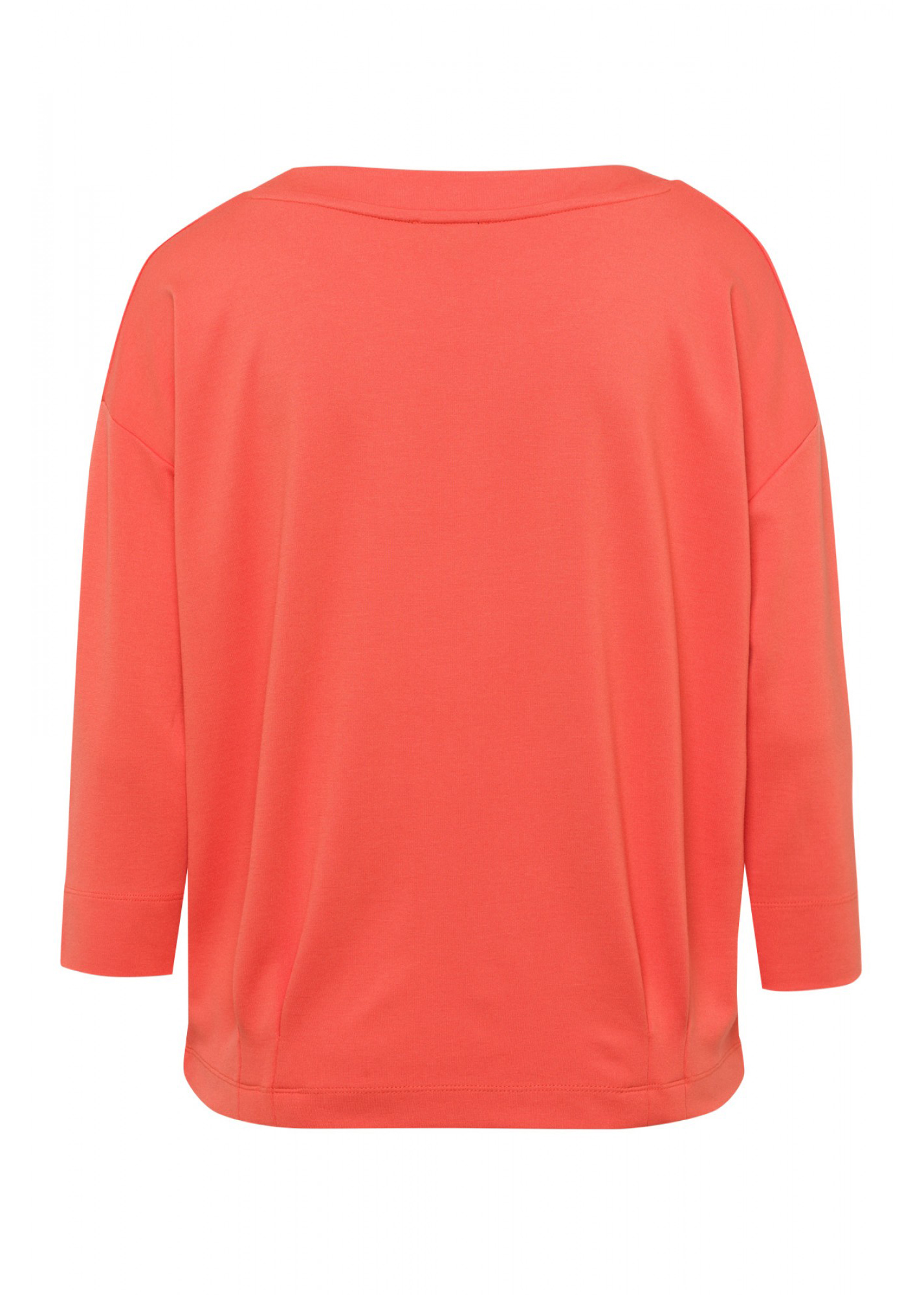 Яркий однотонный джемпер для стильного повседневного образа. Втачной рукав 3/4 со спущенной линией плеча. Овальный вырез горловины. Эластичная лента по низу изделия.