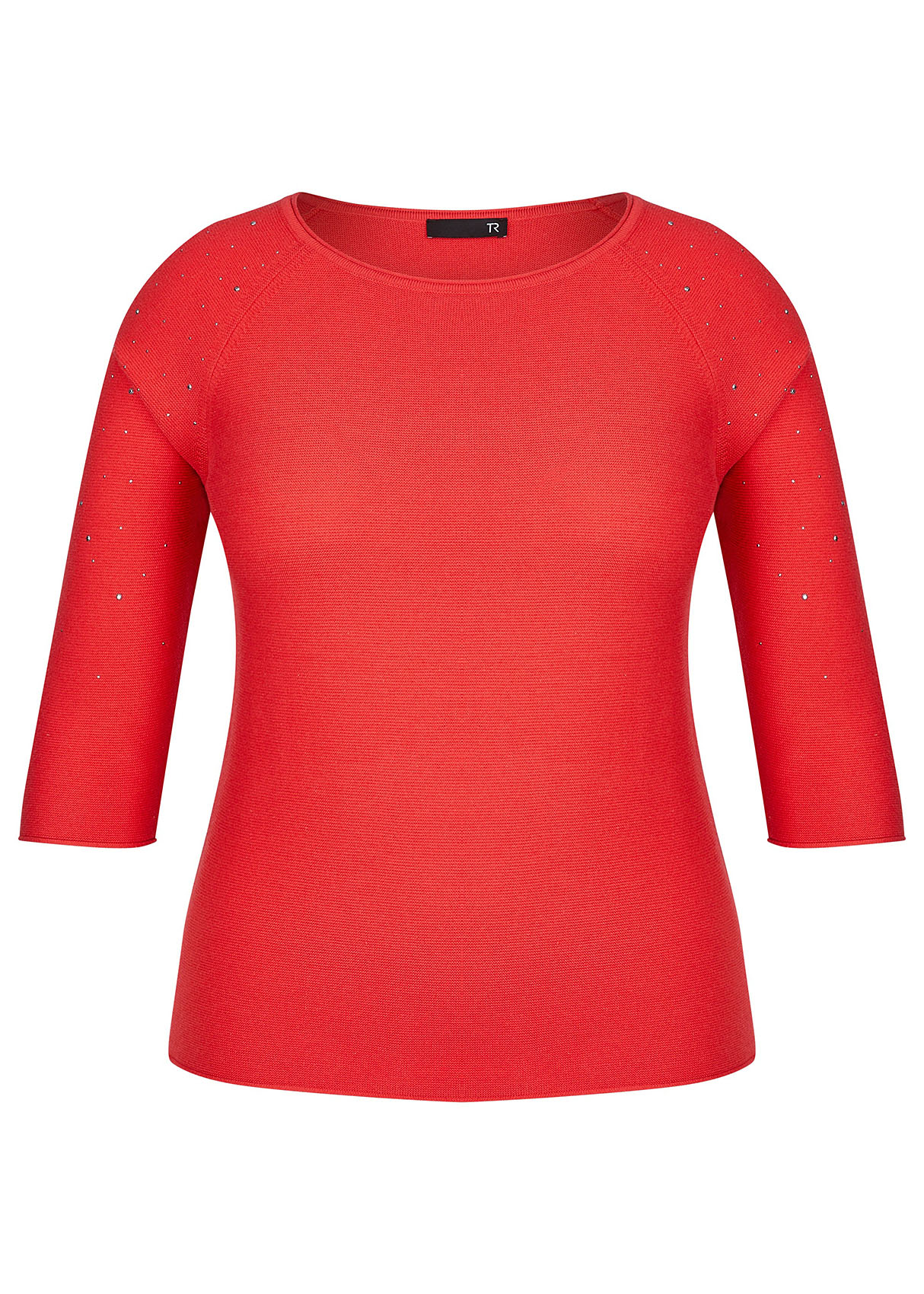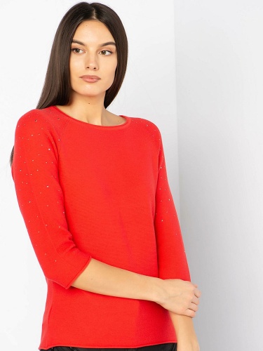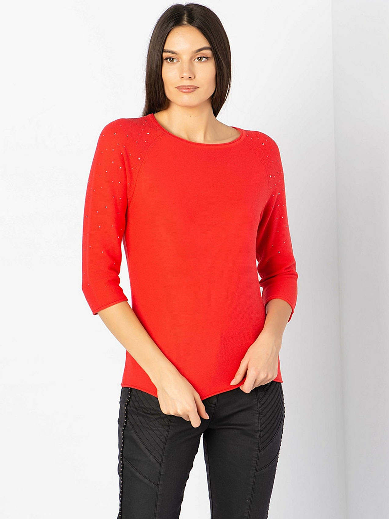 • слегка приталенный силуэт • круглый вырез • рукав 2/3, реглан • декор: стразы • практичный и приятный к телу материал из смеси хлопка и полиакрила