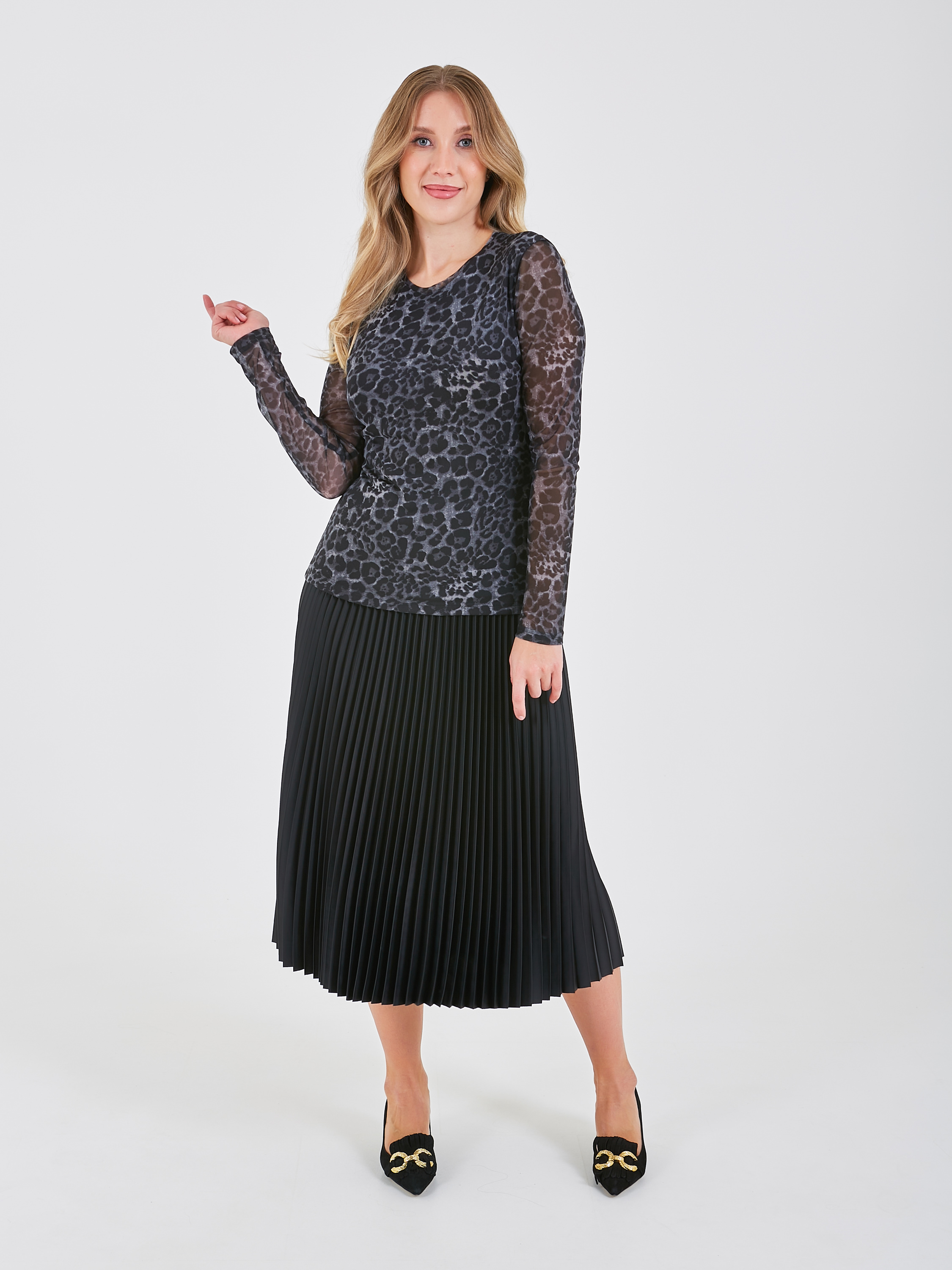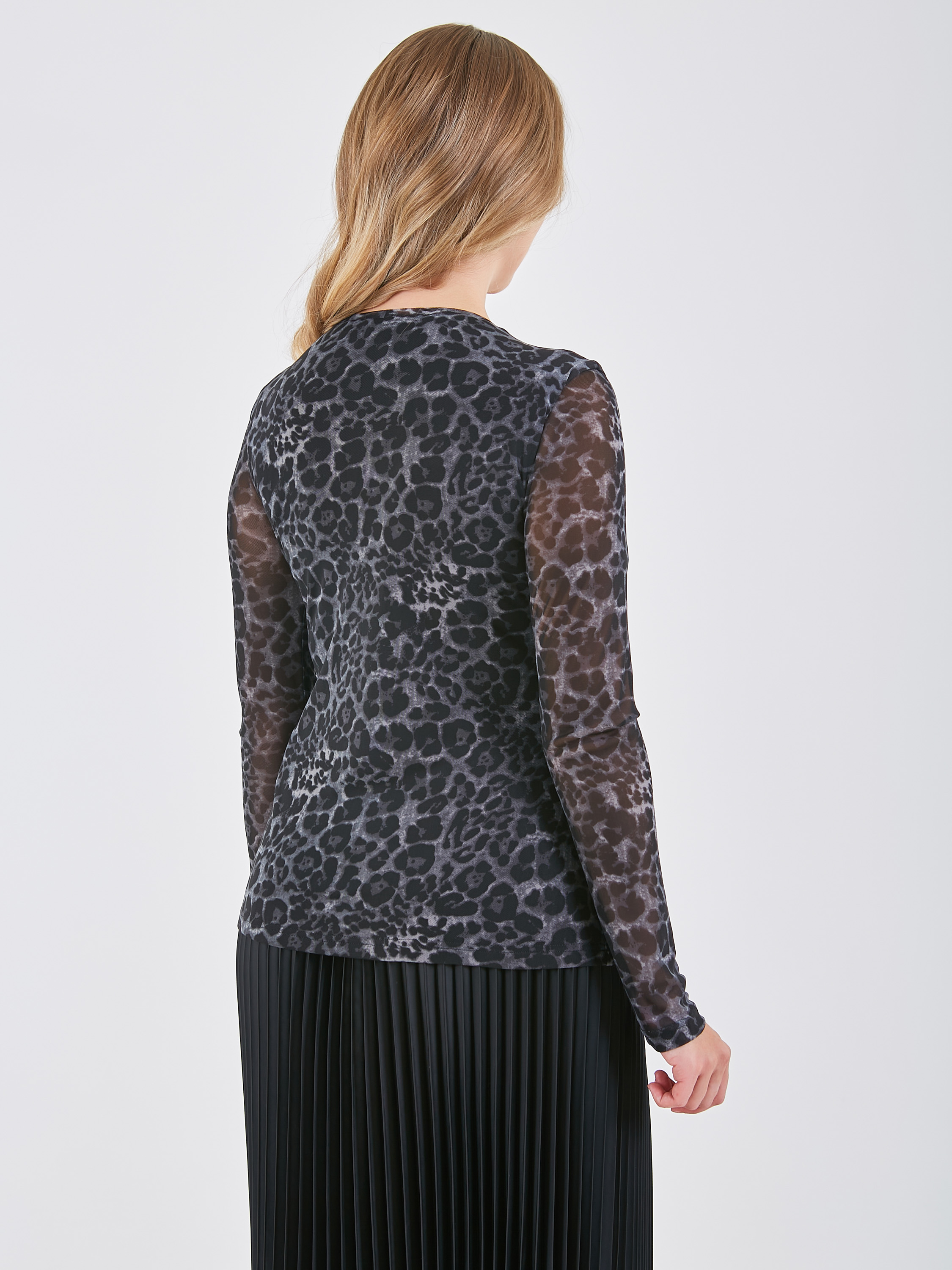 Приталенная блузка с леопардовым принтом. Полупрозрачная фактура на рукавах придаёт лёгкость и изящество. Коллекция Осень-Зима 2024-2025. Капсула "Гостья из будущего".