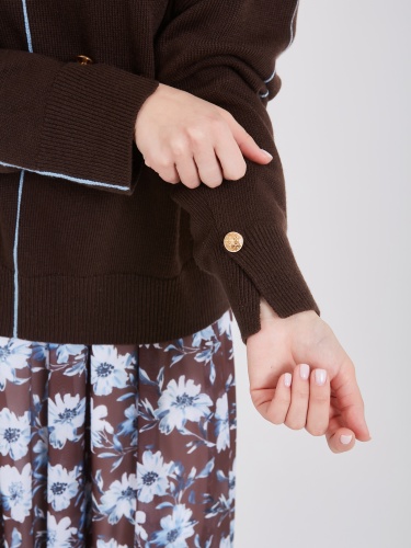 Уютный и мягкий джемпер с высоким горлом - воплощение современной умной моды. В его составе присутствует инновационная анти-пилинг нить, позволяющая сохранить высокие тактильные свойства и прочность материала. Среди деталей выделяются золотые пуговицы на манжетах, вертикальные прострочки по осям изделия контрастного голубого цвета и небольшие разрезы по манжетам и задней части горловины. Такой джемпер прекрасно подчеркивает особенности вашей фигуры, создавая неповторимый и привлекательный образ. Осень-Зима'25/26. Капсула "Вино из одуванчиков"