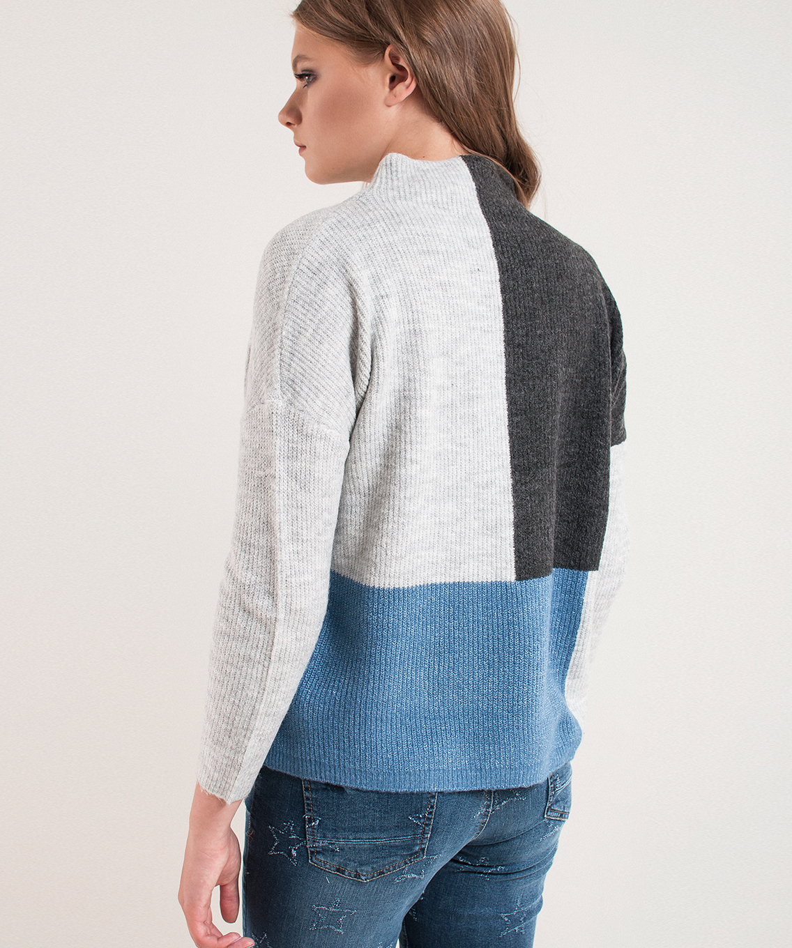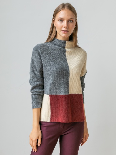 Оригинальный теплый джемпер в стиле колор-блок. Сочетание контрастных оттенков и геометрических форм создает яркий образ. Джемпер представлен в двух оттенках: красном и синем. Шерсть в составе делает материал приятным к телу. Прямой крой подходит любому типу фигуры.