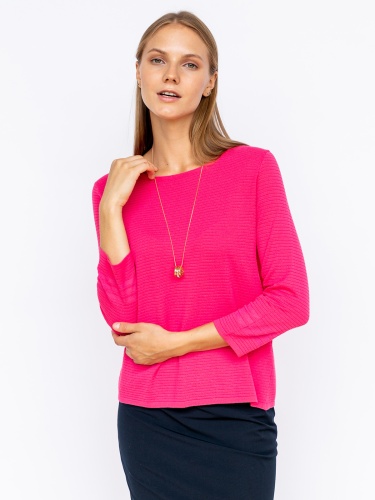 На сайте указаны российские размеры. Ткань: смесовая эластичная ткань. В составе:15% полиамид, 60% вискоза, 25% полиэфир. Крой: джемпер прямого силуэта с рукавом ¾ и круглым вырезом. Эластичность материала позволяет изделию садиться на разные типы фигур, а достаточная плотность – не подчеркивать недостатки фигуры. Отделка: яркий цвет в сочетании с объемной фактурой – именно так в Stern представляют стиль современной женщины, живущей полной жизнью. В ассортименте Stern вы найдете сотни вариантов для создания ярких образов с этим джемпером. Загляните в разделы брюк, юбок и джинсов.