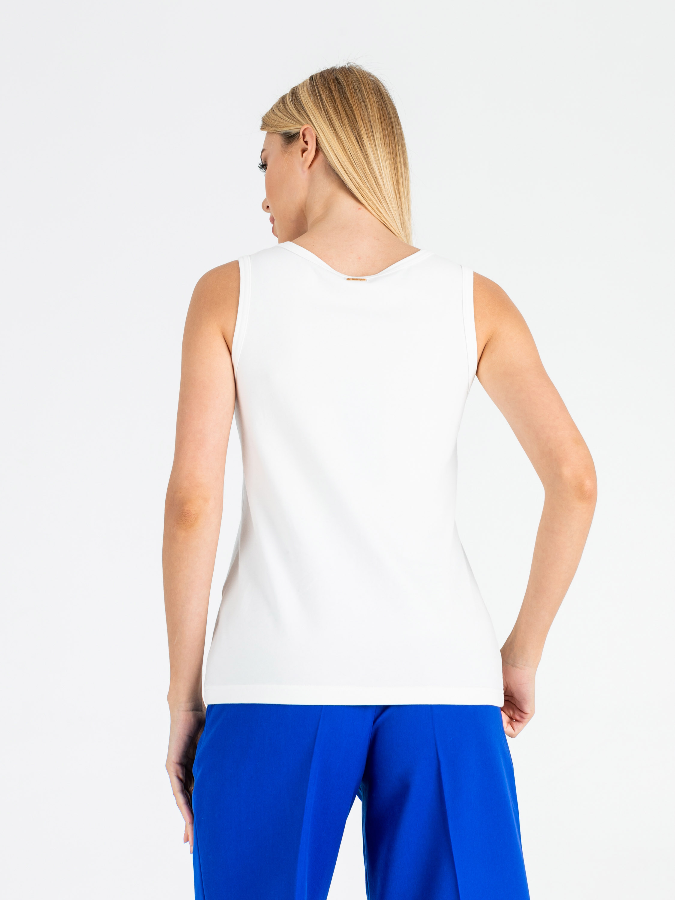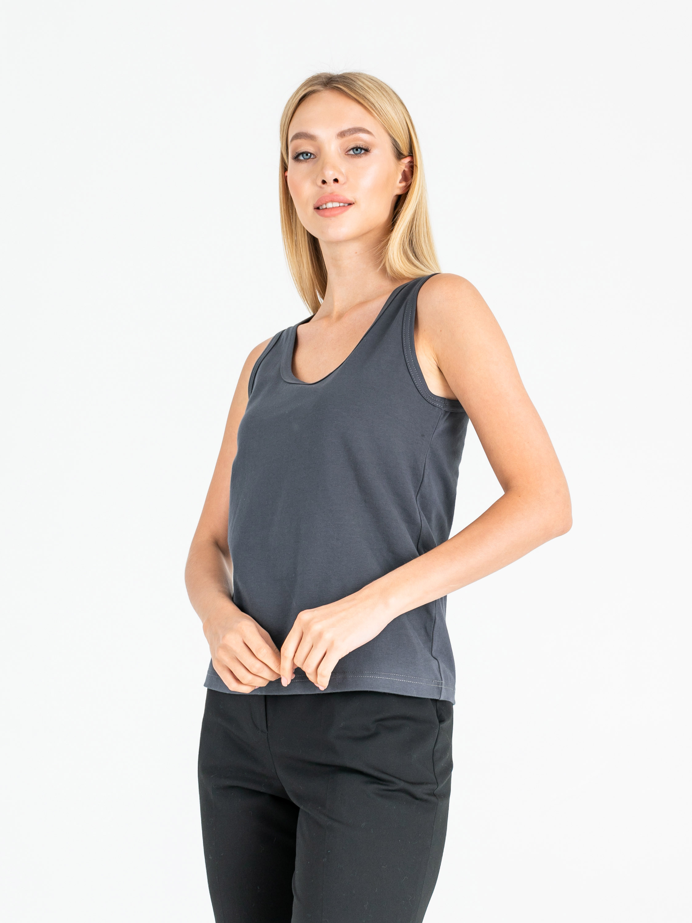 Классический слегка приталенный топ на широких лямках. Параметры модели: 86-61-91 см Рост 177 см